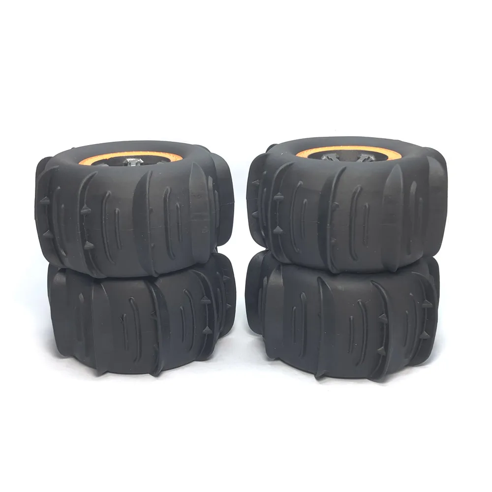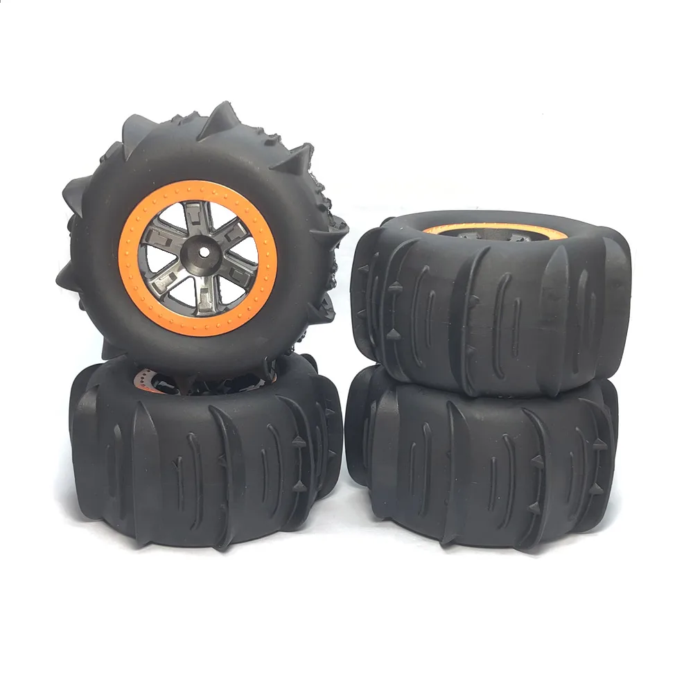 Las ruedas de mejora para arena y nieve a escala 1/10 son la mejora definitiva para tu monster truck RC. Fabricadas con plástico PC de alta calidad, estas llantas están diseñadas para soportar las duras condiciones de las aventuras todoterreno. El diseño Mickey Thompson Baja Claw garantiza una tracción superior en diversos terrenos, desde arena hasta nieve, lo que las convierte en las mejores llantas todoterreno disponibles. Su montaje facilita la instalación, lo que las hace perfectas para los modelos Traxxas HSP Wltoys 104009 104001 XLH 9125 RC Monster Truck.