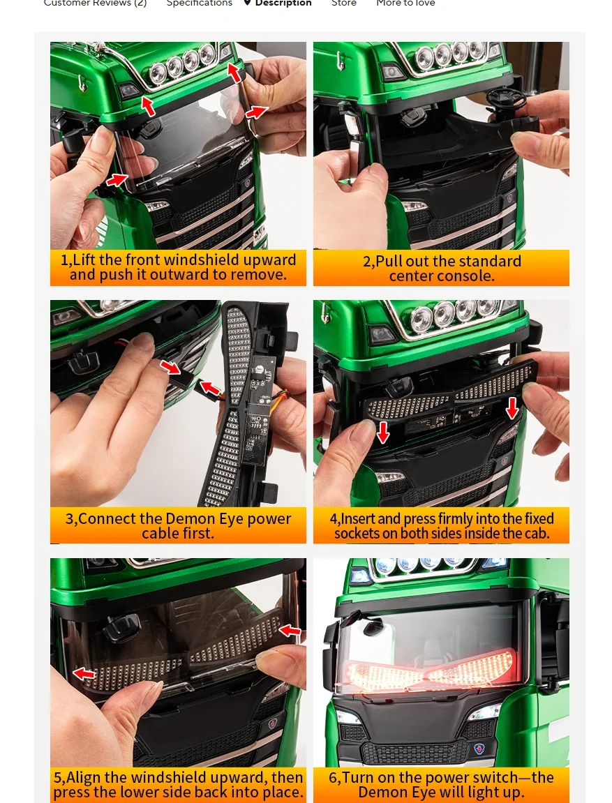 Accesorios para camión RC 1501, luz Demon Eye, tractor de control remoto, piezas de actualización para modelo de camión de control remoto 770S, juguete