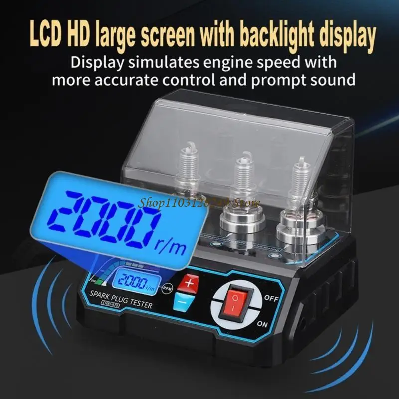 Probador de bujías ajustable con pantalla LCD clara, adecuado para diagnósticos precisos y fácil operación en reparación de automóviles.