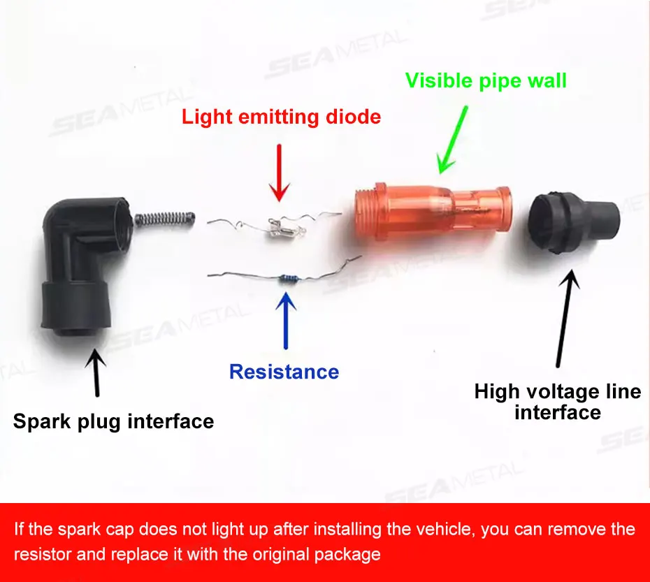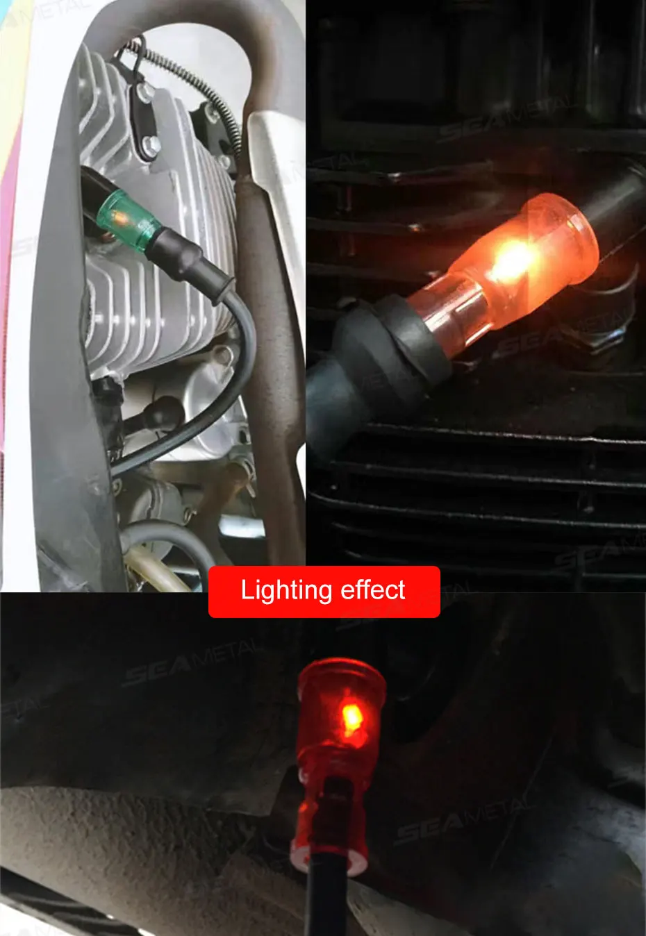 1. Rendimiento de arranque mejorado: experimente la emoción del encendido con cada arranque, ya que nuestra tapa de bujía de destello para motocicleta, con una ventana transparente, le permite ver chispas claras y destellantes, lo que agrega emoción a cada viaje.