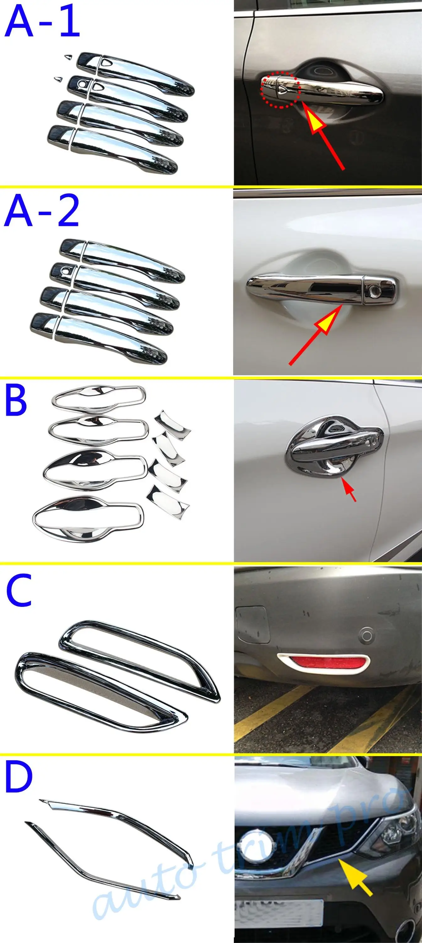 Opción A-1/A-2 : Compatible con la cubierta de la manija de la puerta del Nissan Qashqai