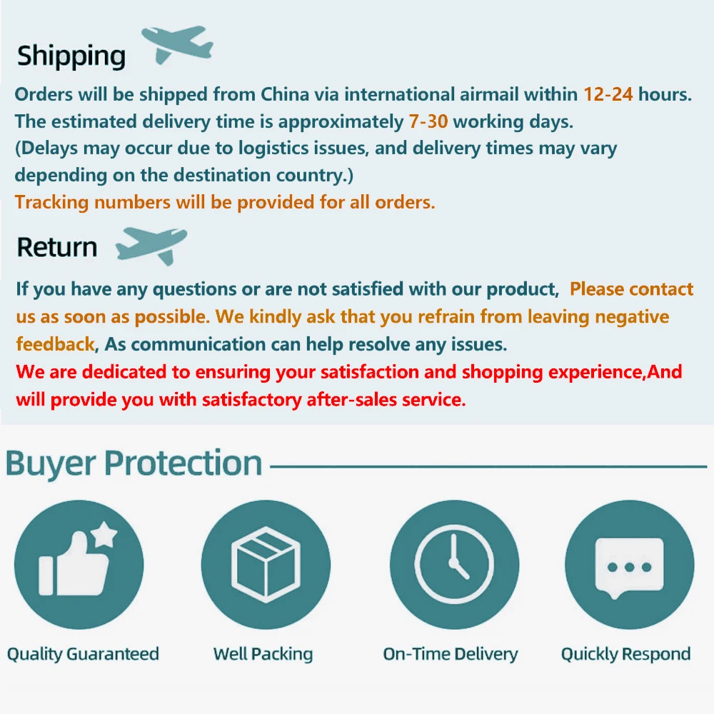 3. El artículo puede dañarse fácilmente durante el transporte. Si no puede usarlo, contáctenos para que le reembolsemos el dinero. No presente objeciones ni comentarios negativos.