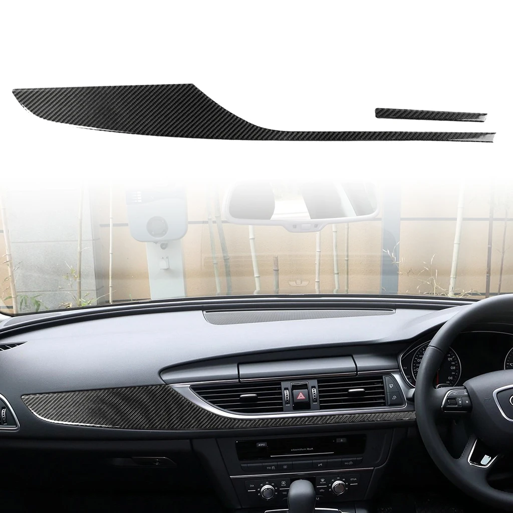 Accesorios de fibra de carbono para Audi A6 C7, modificación interior del salpicadero del coche, tira decorativa para copiloto, pegatina embellecedora