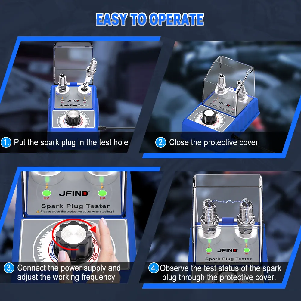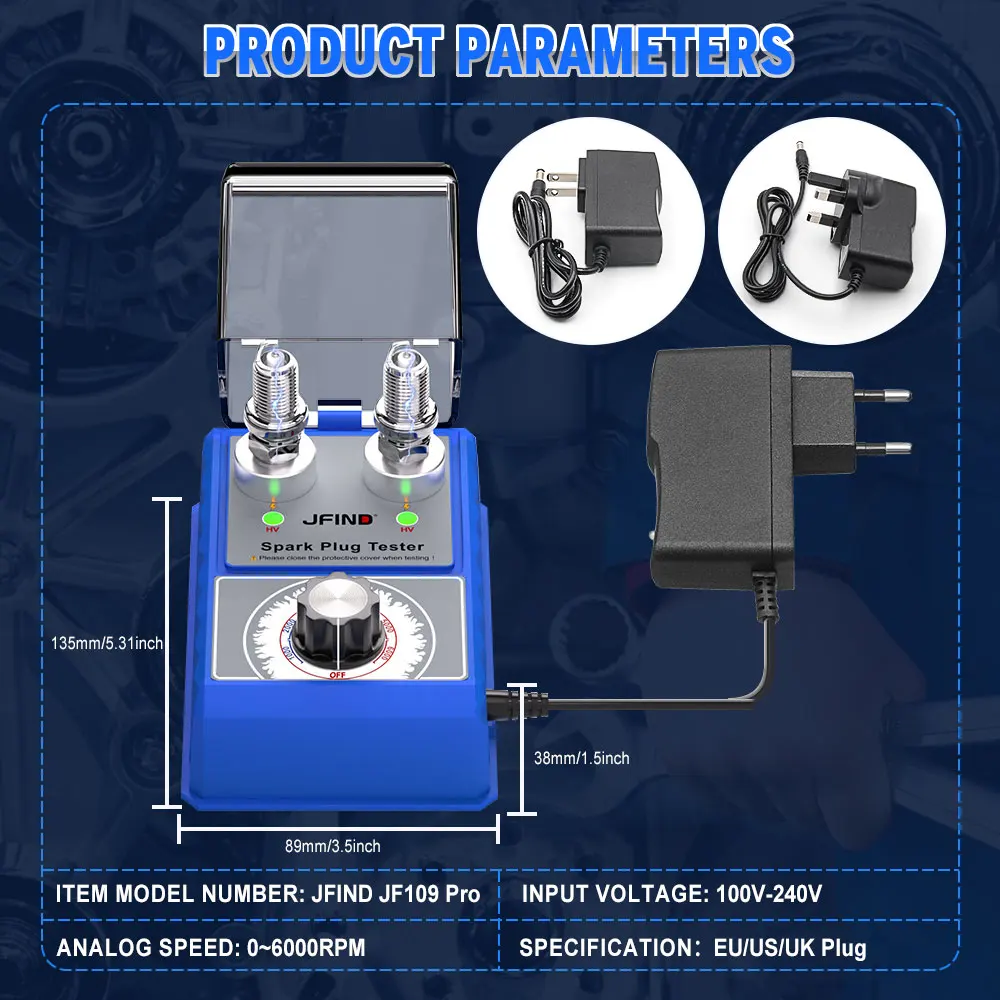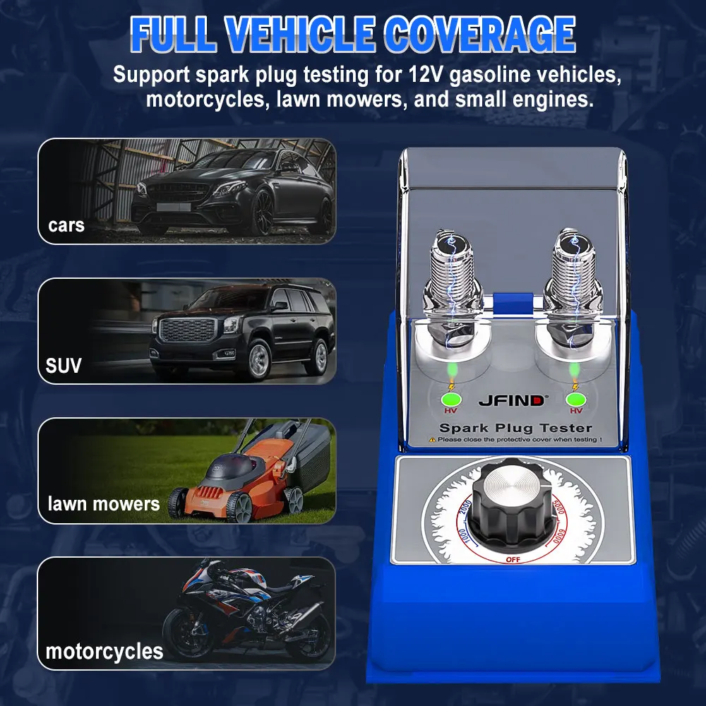 JFIND JF109 Pro - Probador de bujías para coche (100 V, 240 V, con cubierta protectora, doble orificio, 12 V)
