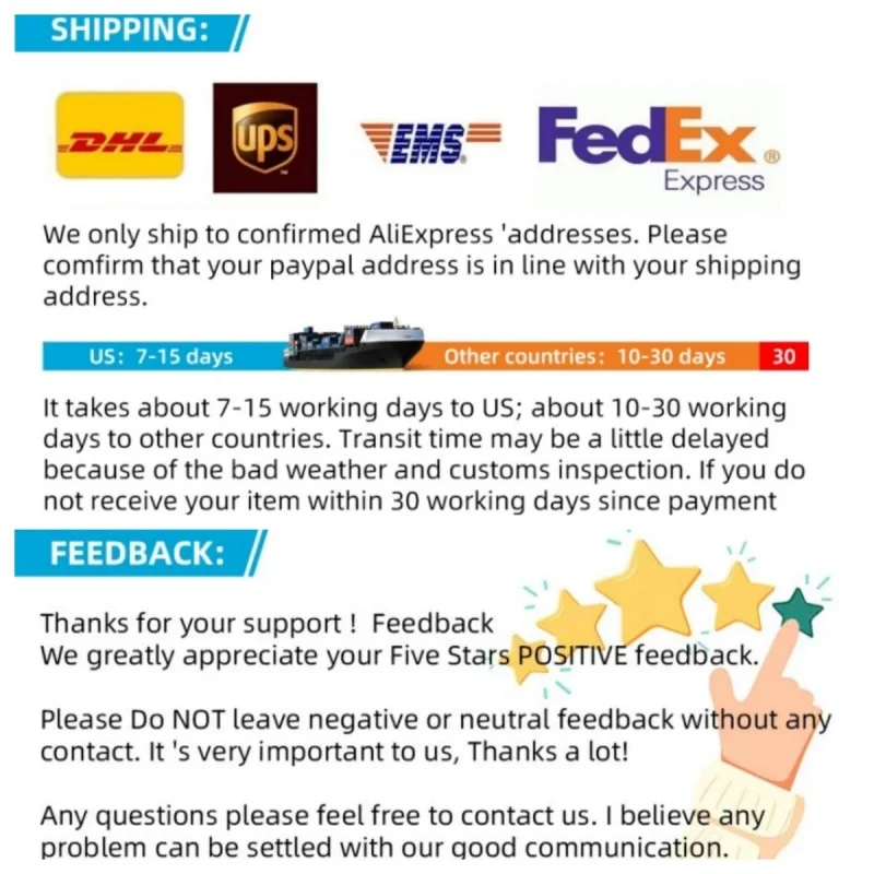Nos esforzamos por procesar y enviar todos los pedidos de manera oportuna, trabajando diligentemente para garantizar que sus artículos lleguen a usted lo antes posible.