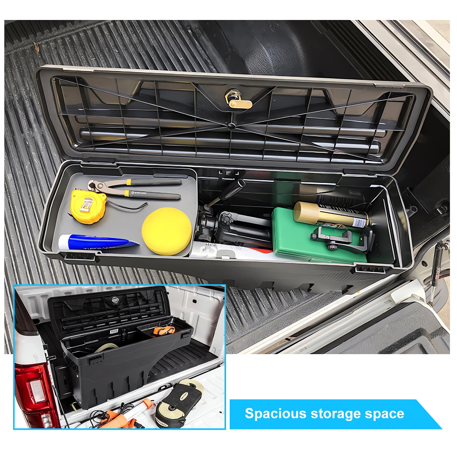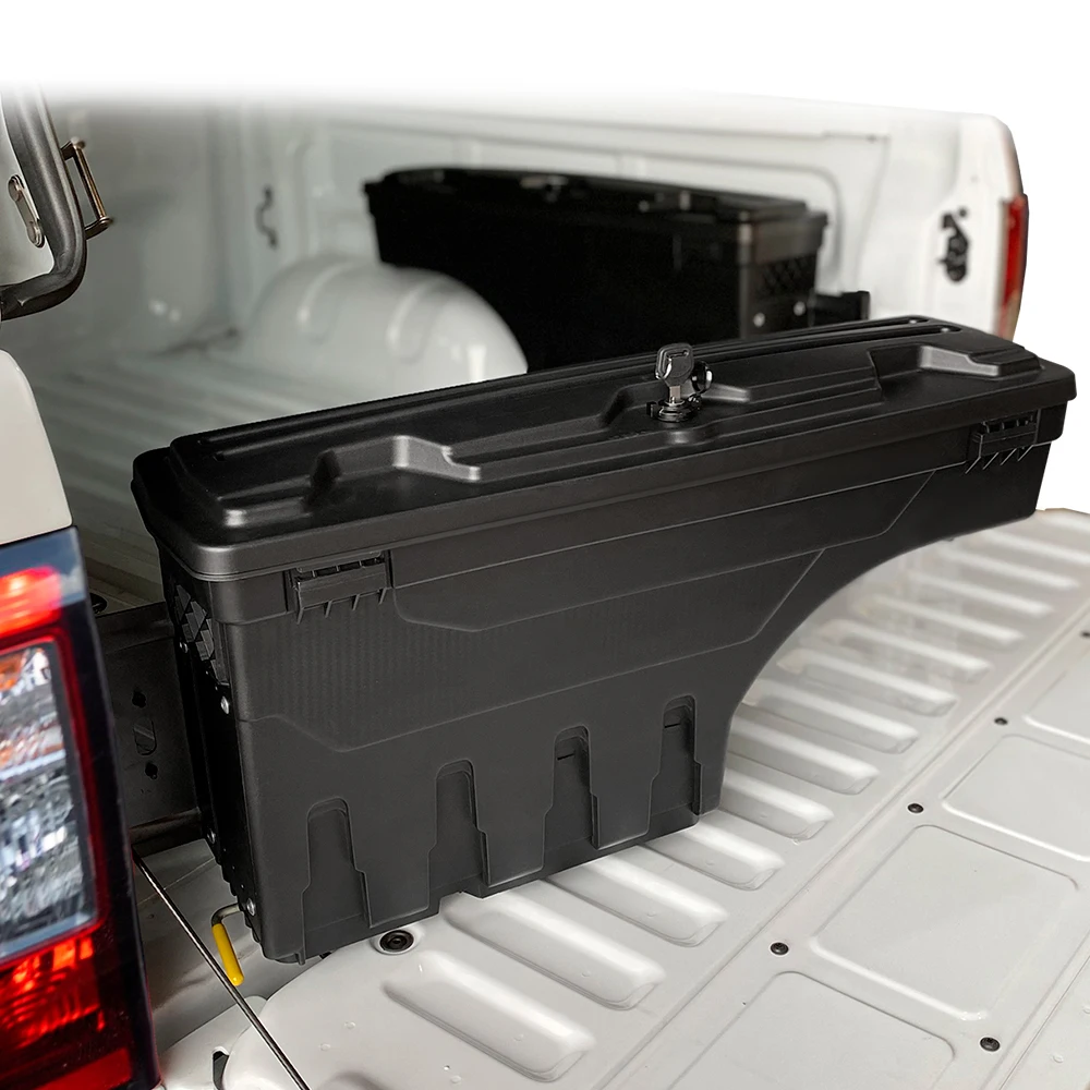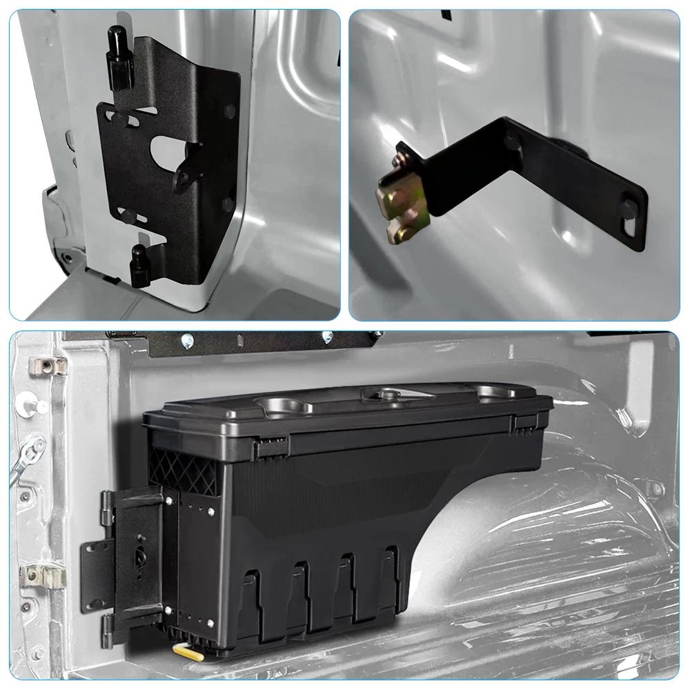 --MÁXIMA ACCESIBILIDAD: Esta caja de herramientas gira casi 180° hacia usted para un fácil acceso desde el portón trasero y gira hacia atrás a una posición de bloqueo sobre el hueco de la rueda para un acceso máximo a la caja.