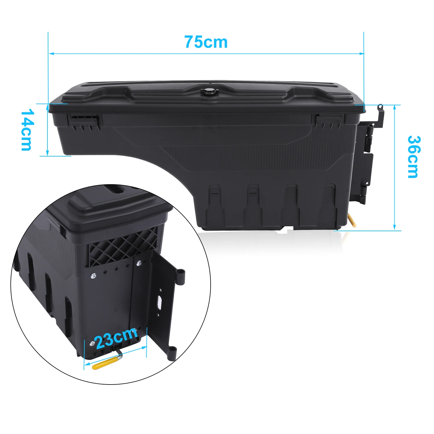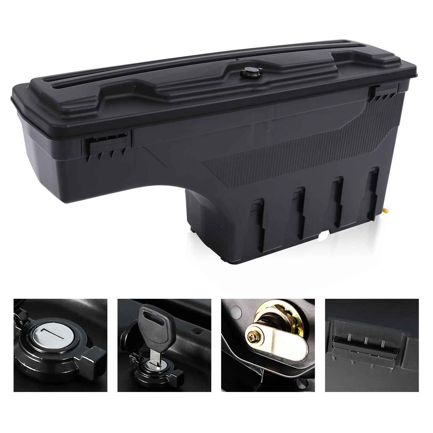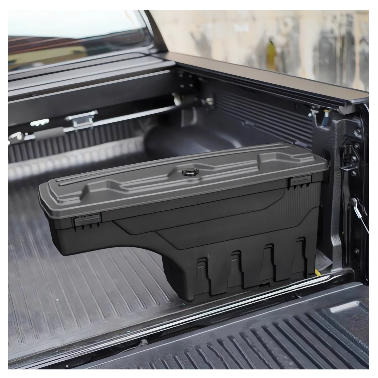 --MÁXIMA ACCESIBILIDAD: Esta caja de herramientas gira casi 180° hacia usted para un fácil acceso desde el portón trasero y gira hacia atrás a una posición de bloqueo sobre el hueco de la rueda para un acceso máximo a la caja.