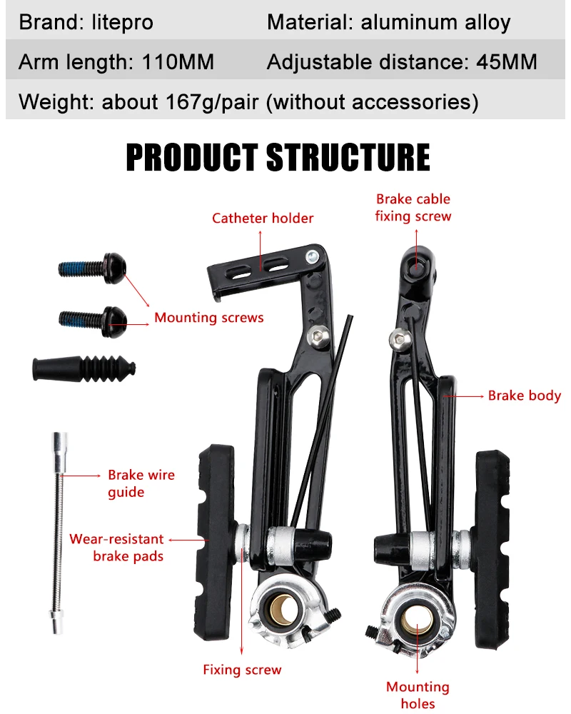 Brazos de freno en V para bicicleta, juego de frenos en V, pinza para bicicleta plegable, extensión de llanta BMX, pinza de montaje directo, accesorios de ciclismo
