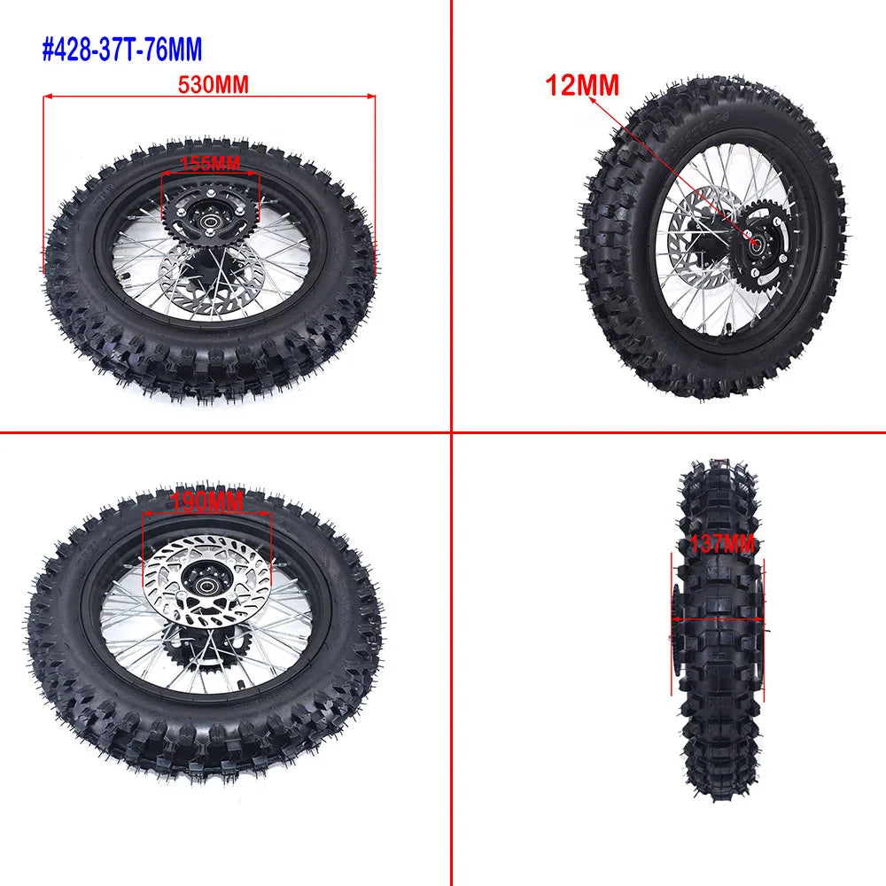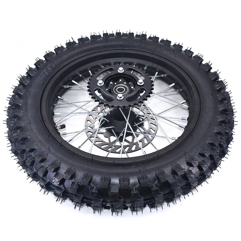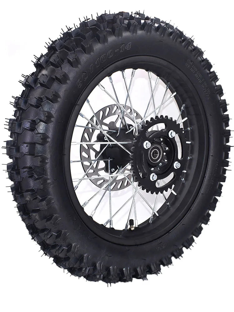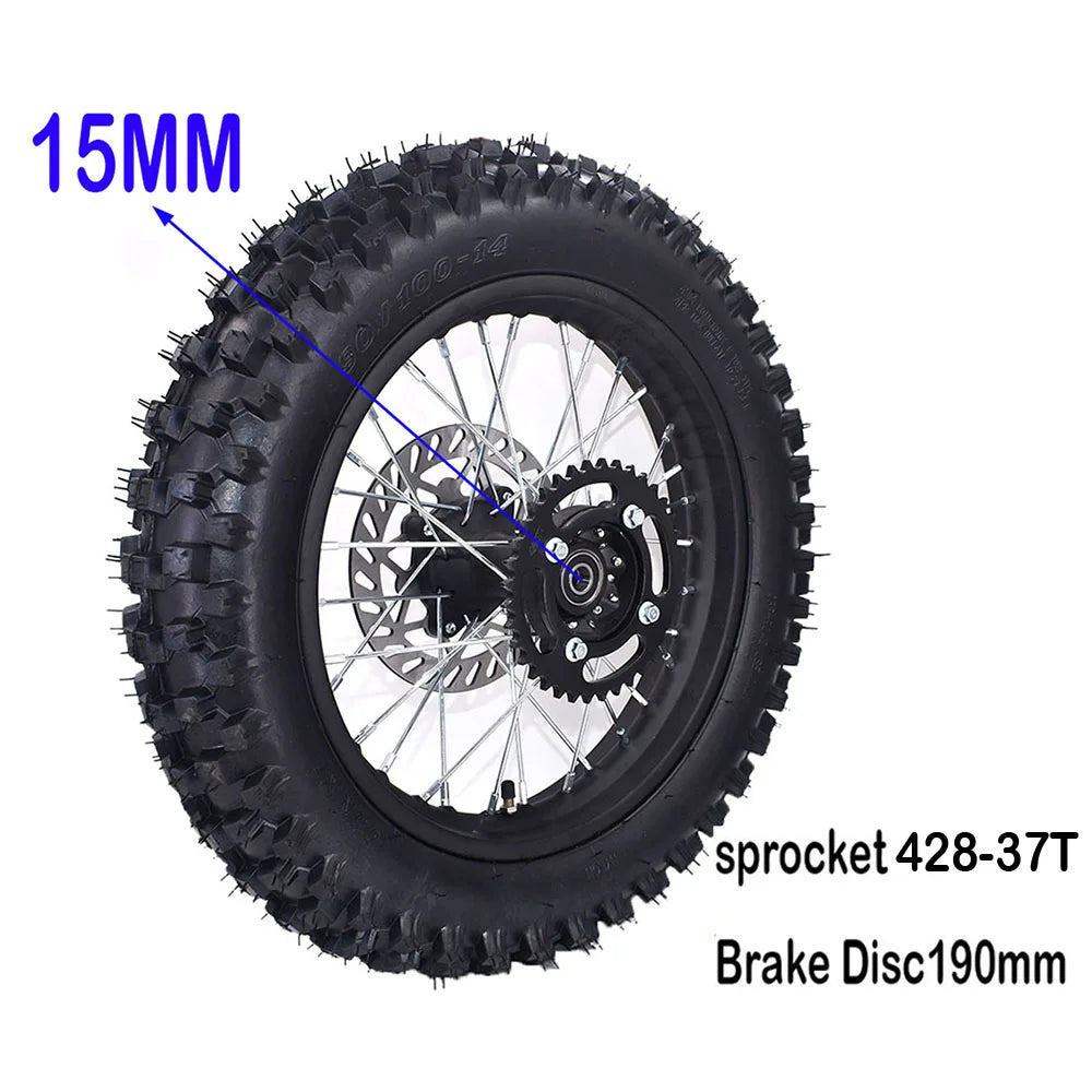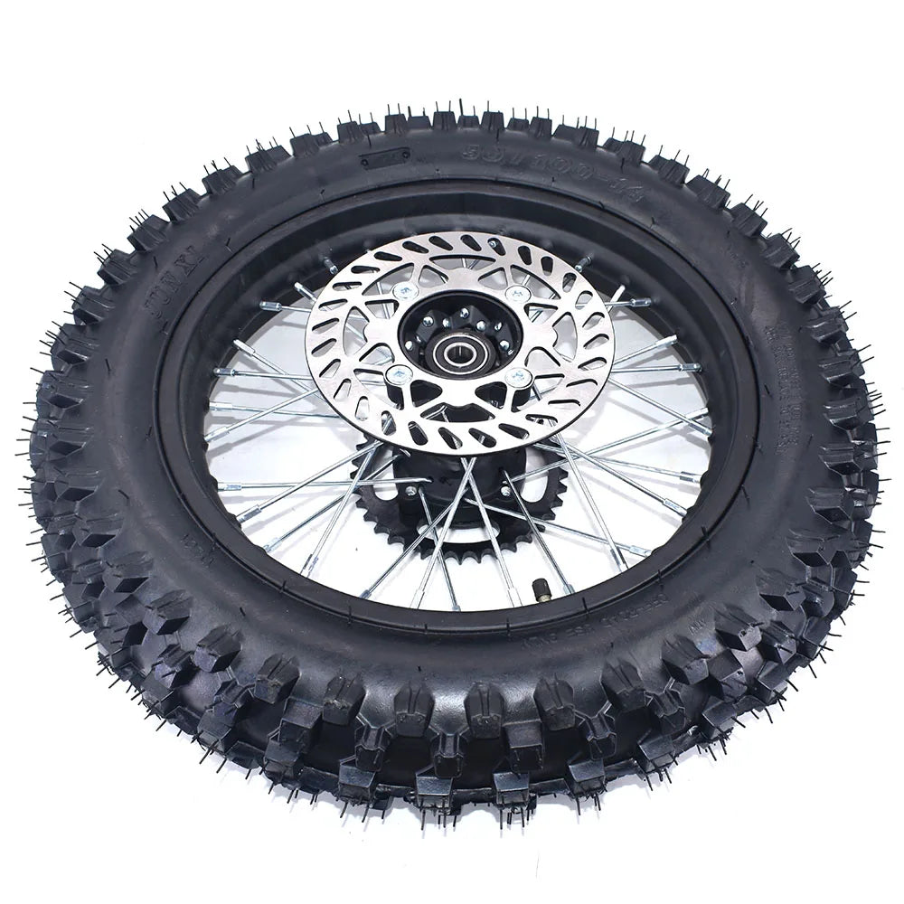 1.85-14 Inch Rear 14" Wheel 90/100-14 Dirt Tire Steel Circle Rims With Brake Disc Plate and Sprocket For Dirt Bike Motorcycle