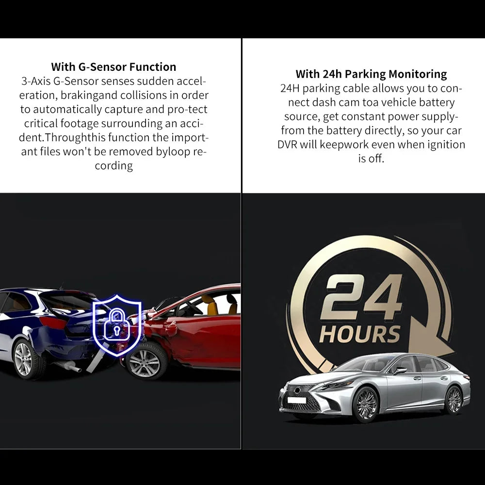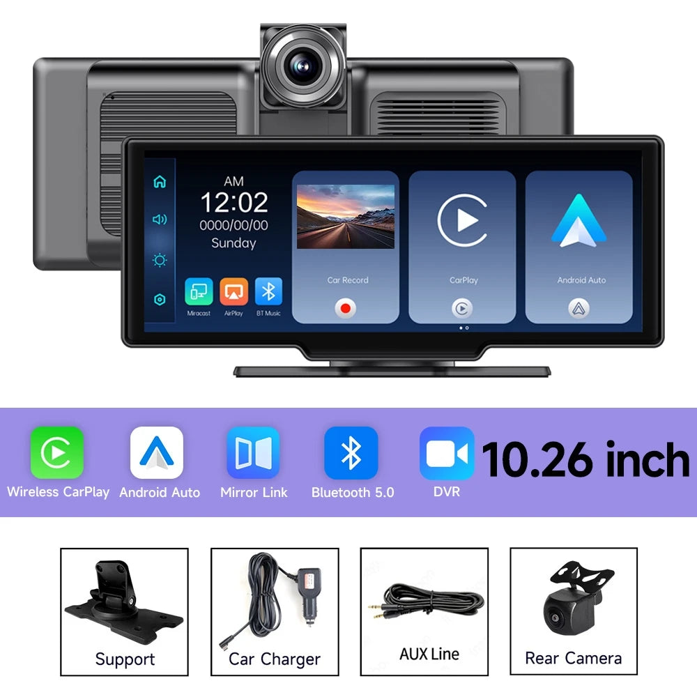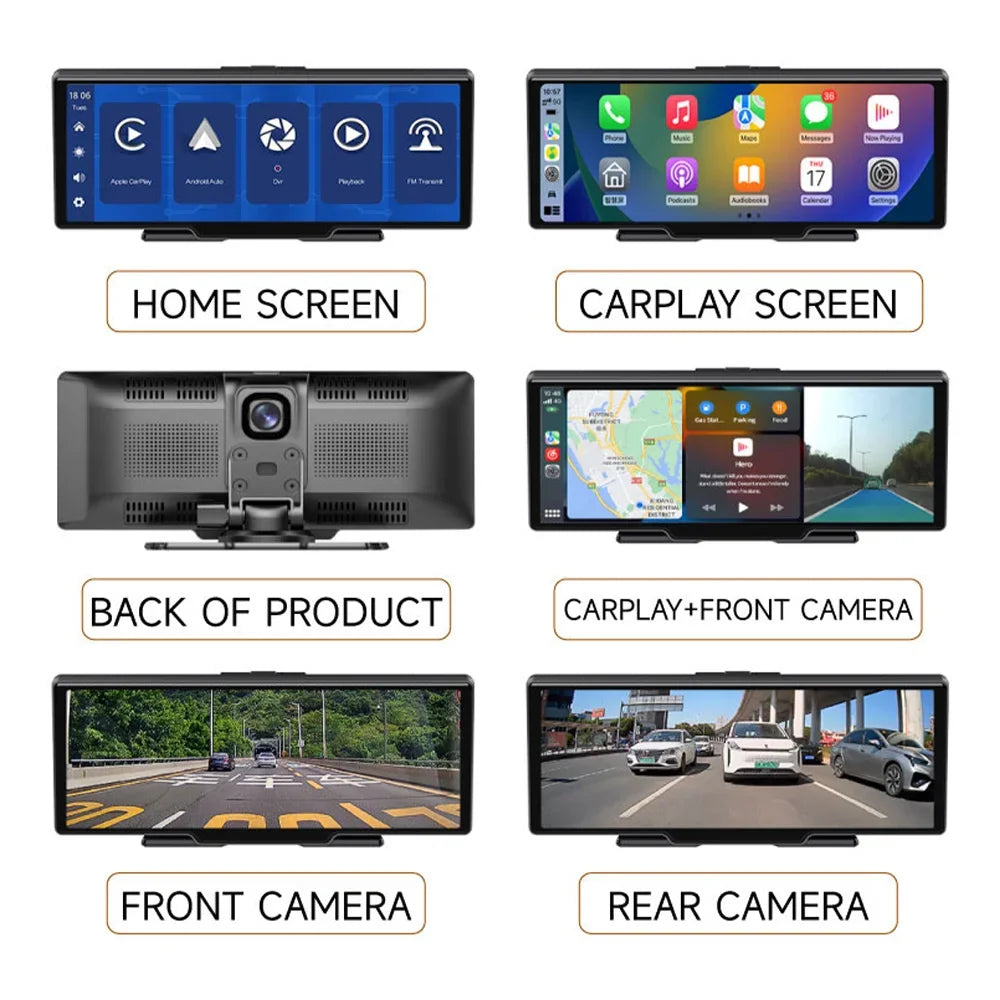 10.26 Inch 4K Car DVR Dash Cam Rearview Camera Carplay & Android Auto Navigation With Voice Control BT FM Monitor Car Screen