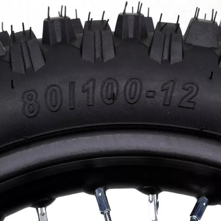 12'' Rear Wheel 80/100-12 RimTire 3.00-12 Tire 12mm Bearing Axle for Pit Pro Trail Bikes Off-road Apollo CRF 125cc