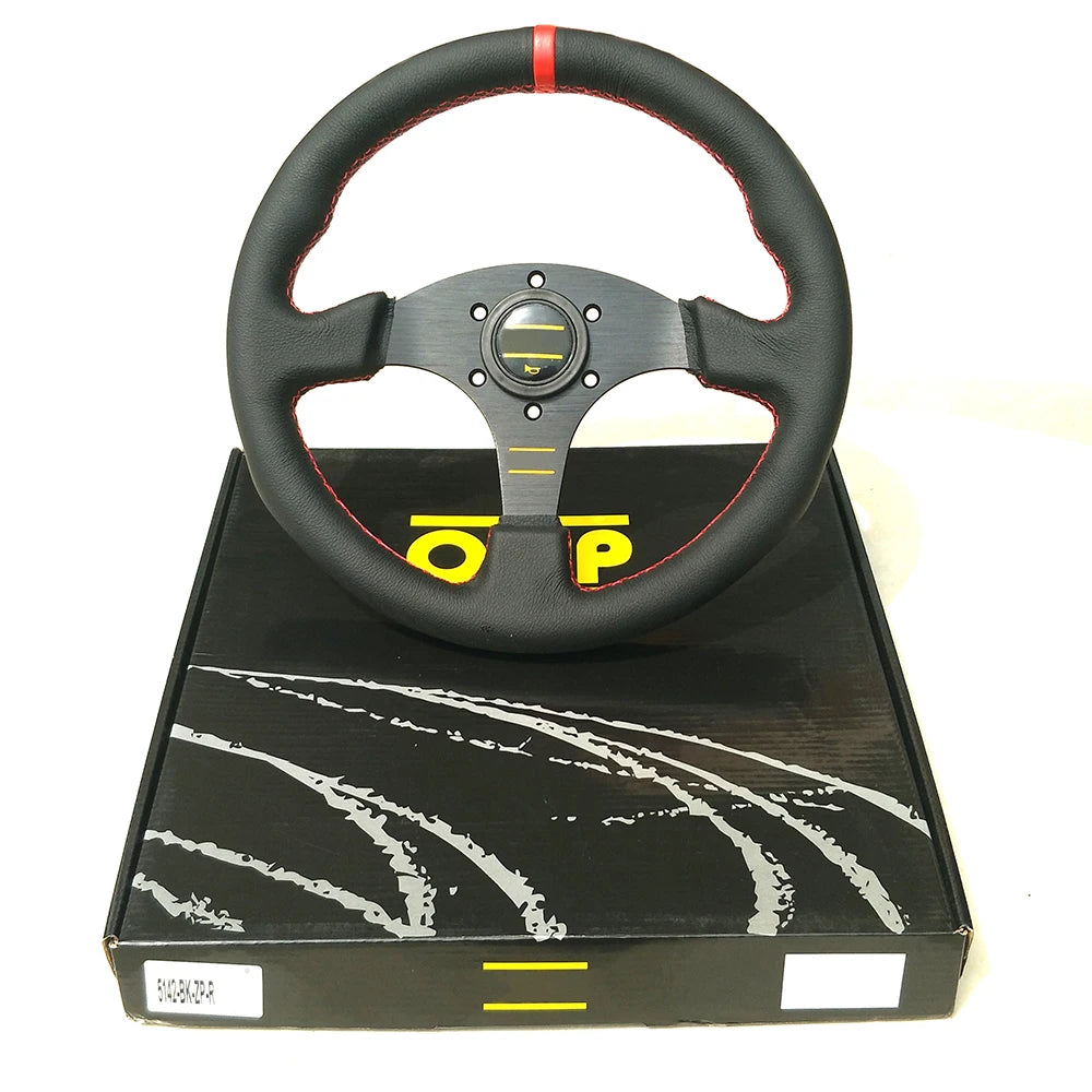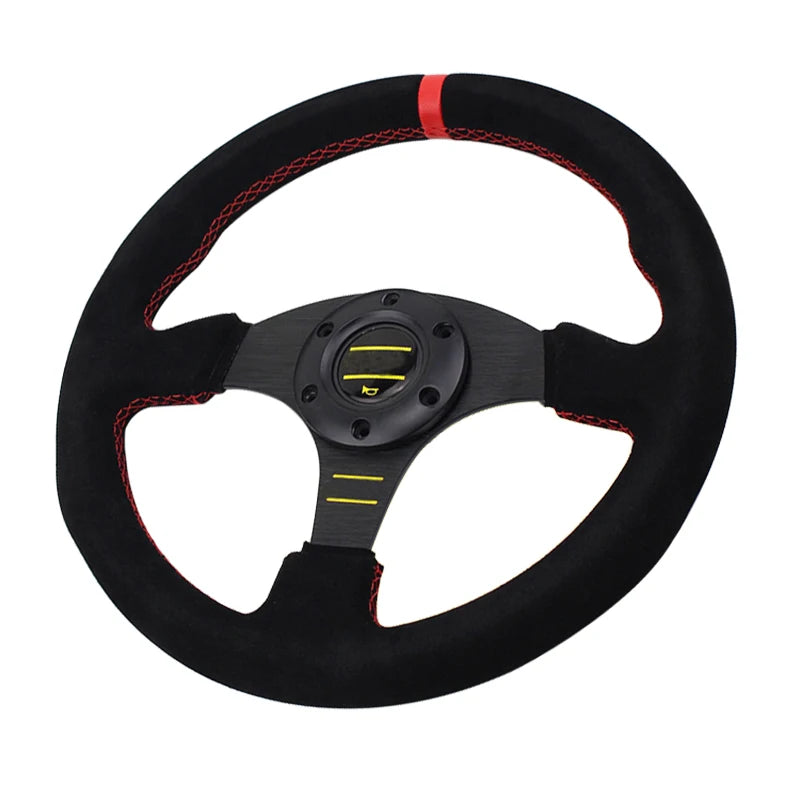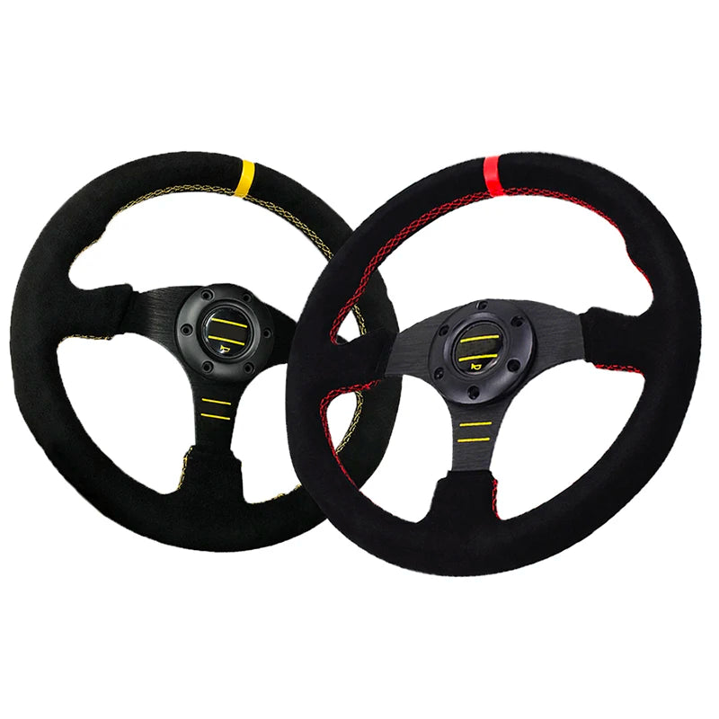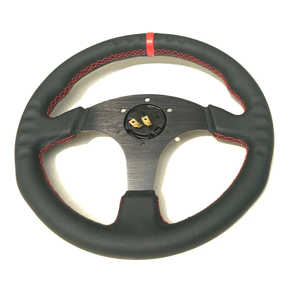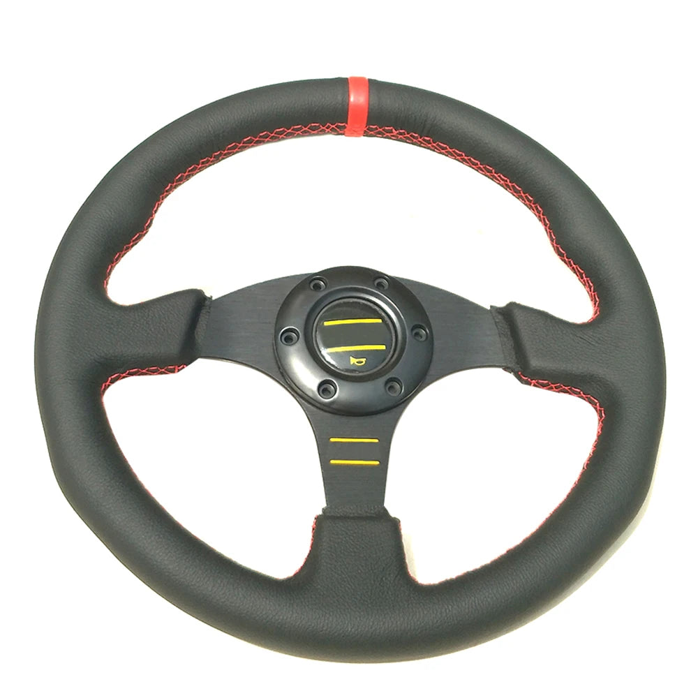 13'' Volante Car Sport Steering Wheel 330mm Flat Genuine Leather Game Steering Wheel For PC Red/Yellow Stitching