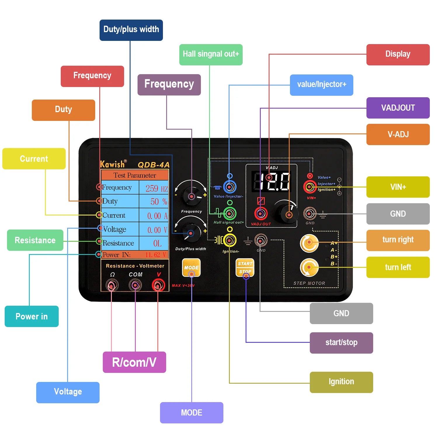 Upgraded Drive QDB-4A Automobile Ignition Coil Tester Injector Solenoid Valve Idling Stepper Motor Instrument Fault Detector