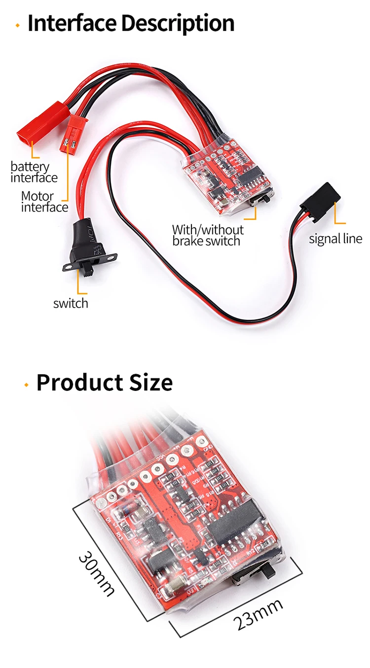 30A 4-8V Mini Brushed Electric Speed Controller ESC Brush Electronic Motor Speed Controller For RC Car