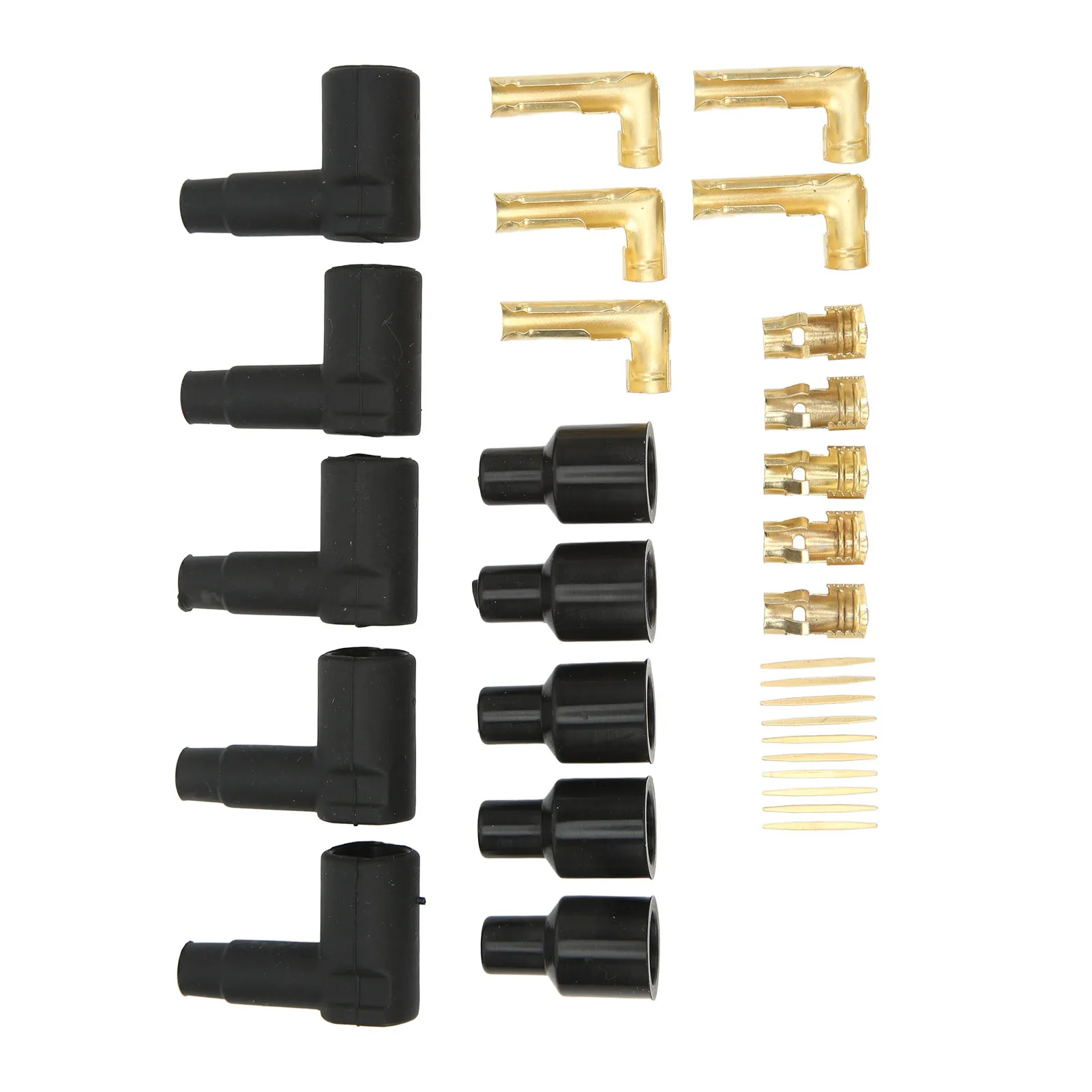 30PCS Spark Plug Coil Wire Boot Black Rubber Material Terminal Kit Fit for 6‑10mm Wires