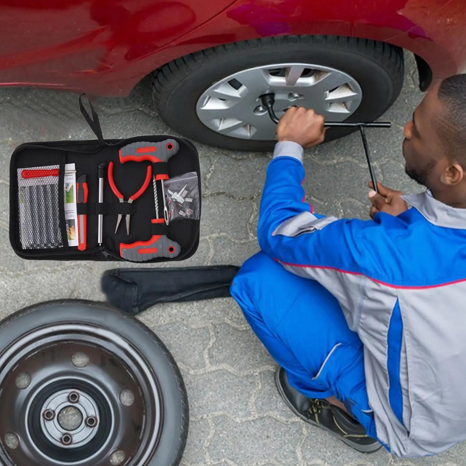 34 Pieces Car Tire Repair Kit Motorcycle Patch Flats Repair Kit Portable Fix Tools for Travel Daily Roadside Sedans SUV Truck RV