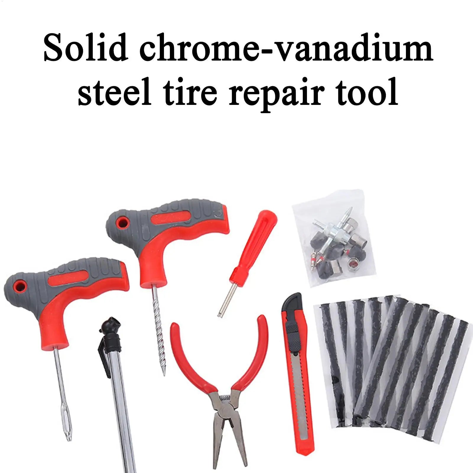 Designed for durability and convenience, this portable tire repair solution features a T Handle design and robust fix tools. Suitable for vehicles including motorcycles, trucks, ATVs, tractors, and trailers, it caters to SUVs, golf carts, and sedans. Whether traveling through rural areas, camping, or embarking on road trips, this kit assures reliable support for drivers in need of roadside assistance.