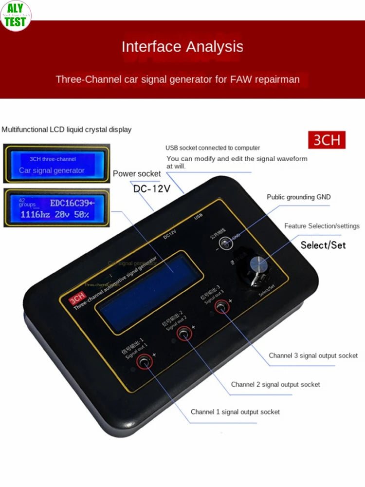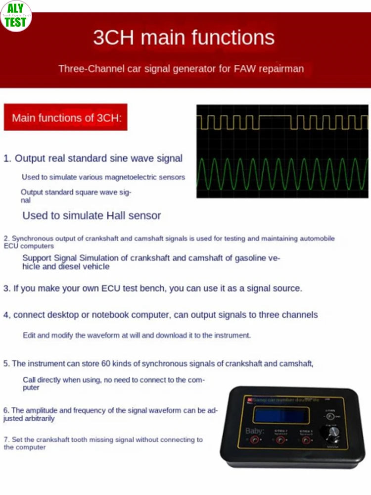 3CH Three Channel Auto Signal Generator ECU Computer Maintenance Tester Crankshaft Camshaft Sensor Simulator