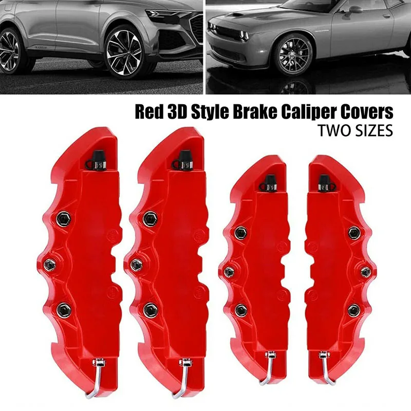 4PC 3D Car Disc Brake Caliper Cover Case Front Rear Accessories S+M ABS Plastic Brake Disc Wheel Hub Brake Covers Car Decoration