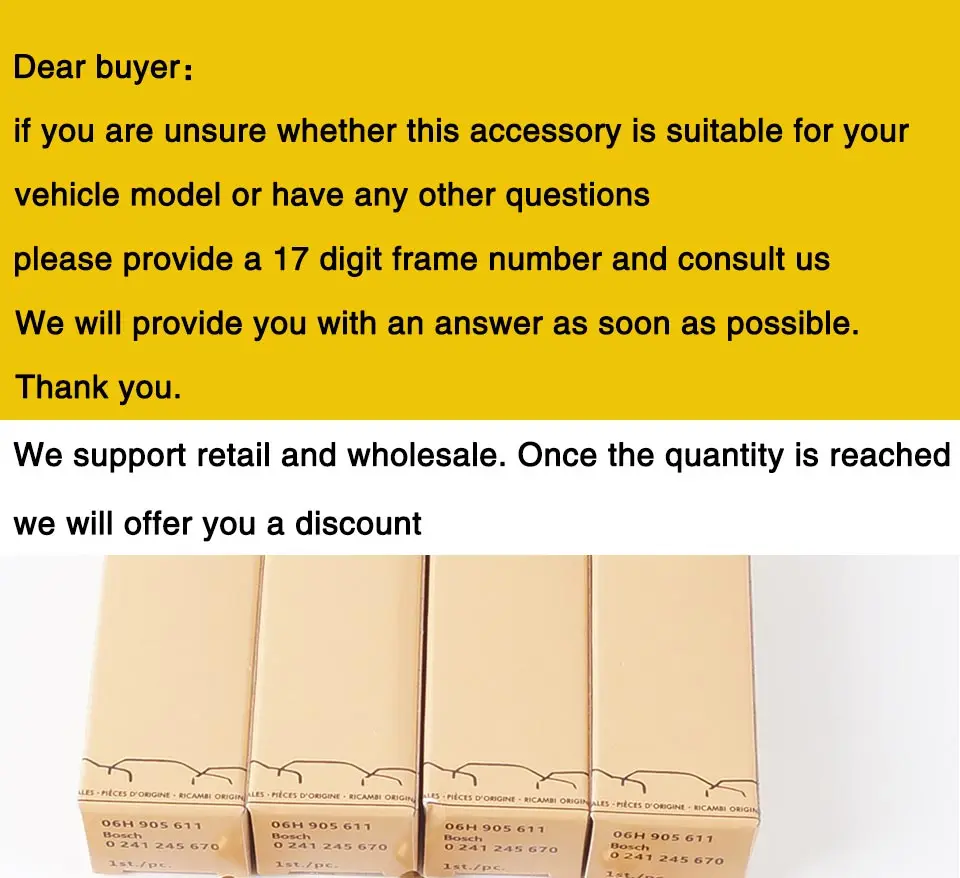 4PCS-06H905611 06H905604 Spark Plug for Audi A4 B8 A5 Q3 Q5 VW Golf GTI Passat CC B7 Sharan Scirocco EA888 GEN 2 06H905601A