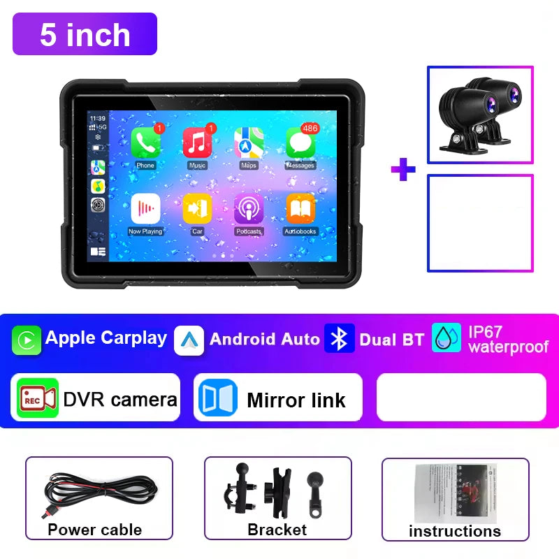 5 inch Motorcycle DVR Navigation GPS Wireless CarPlay Android Auto Dash Cam Display Screen Portable DVR TPMS Moto Monitor IPX7