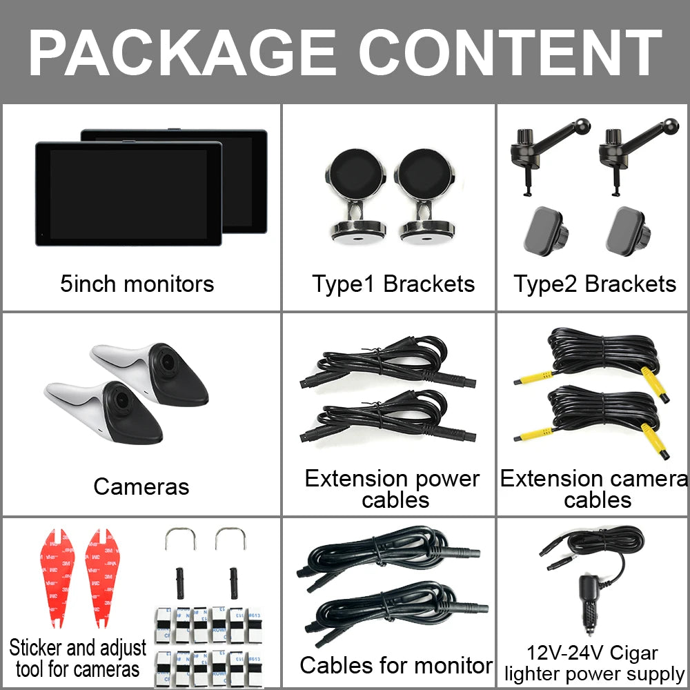 5inch touch screen digital side view monitor with 2pcs AHD 1080P camera with AI function (2pcs monitor+2pcs cameras)