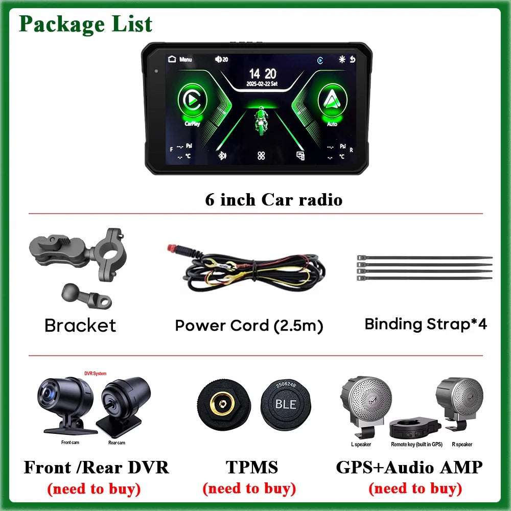 6 inch Motorcycle Navigation Incell Screen 1440*720 Wireless CarPlay Android Auto Motorcycle GPS Motor DVR Monitor TPMS Optional