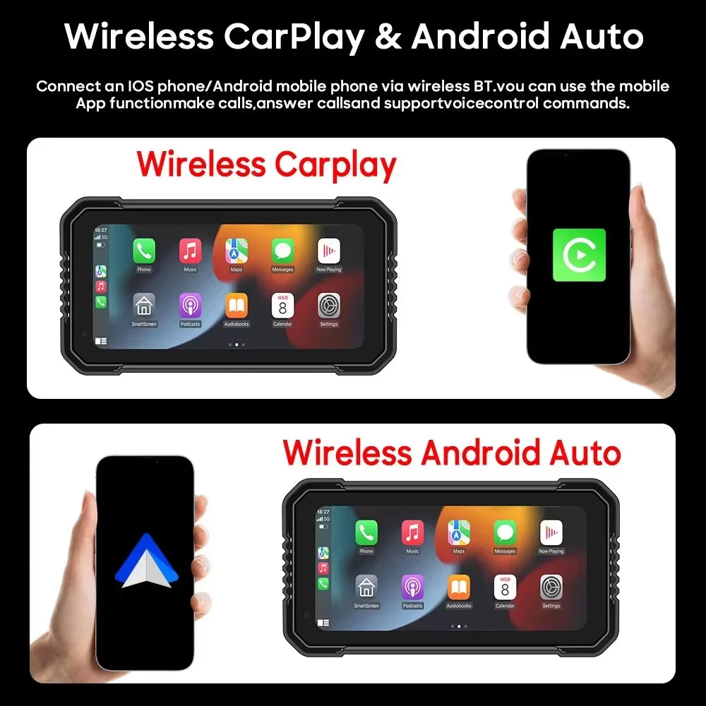 6 inch Motorcycle Navigation Incell Screen 1440*720 Wireless CarPlay Android Auto Motorcycle GPS Motor DVR Monitor TPMS Optional
