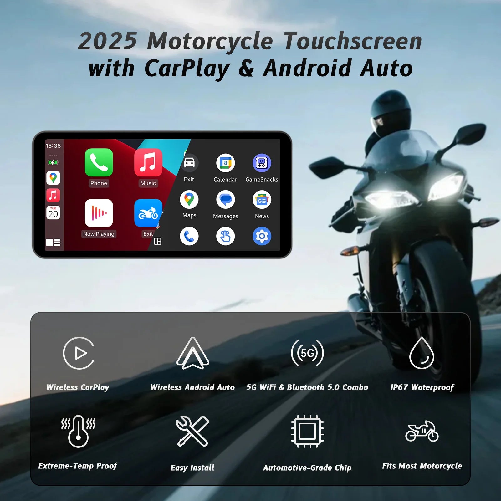 6-Inch Motorcycle Smart Display – Wireless CarPlay & Android Auto | Bluetooth Voice Control | IP67 Waterproof | HD Touchscreen |