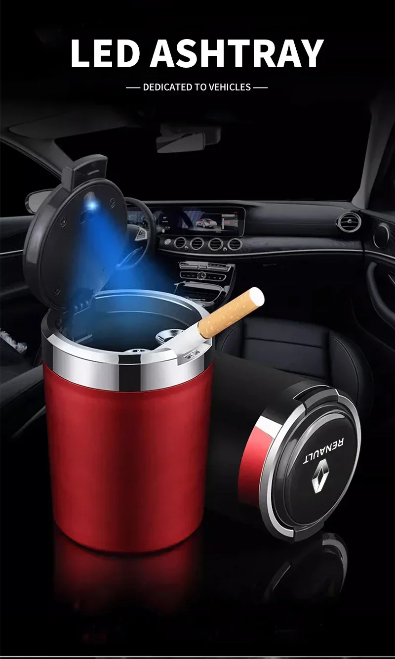 Car Interior Decoration Led Lighting Car Ashtray For Renault Sandero Captur Megane Twingo Duster Scenic Logan Laguna Accessories