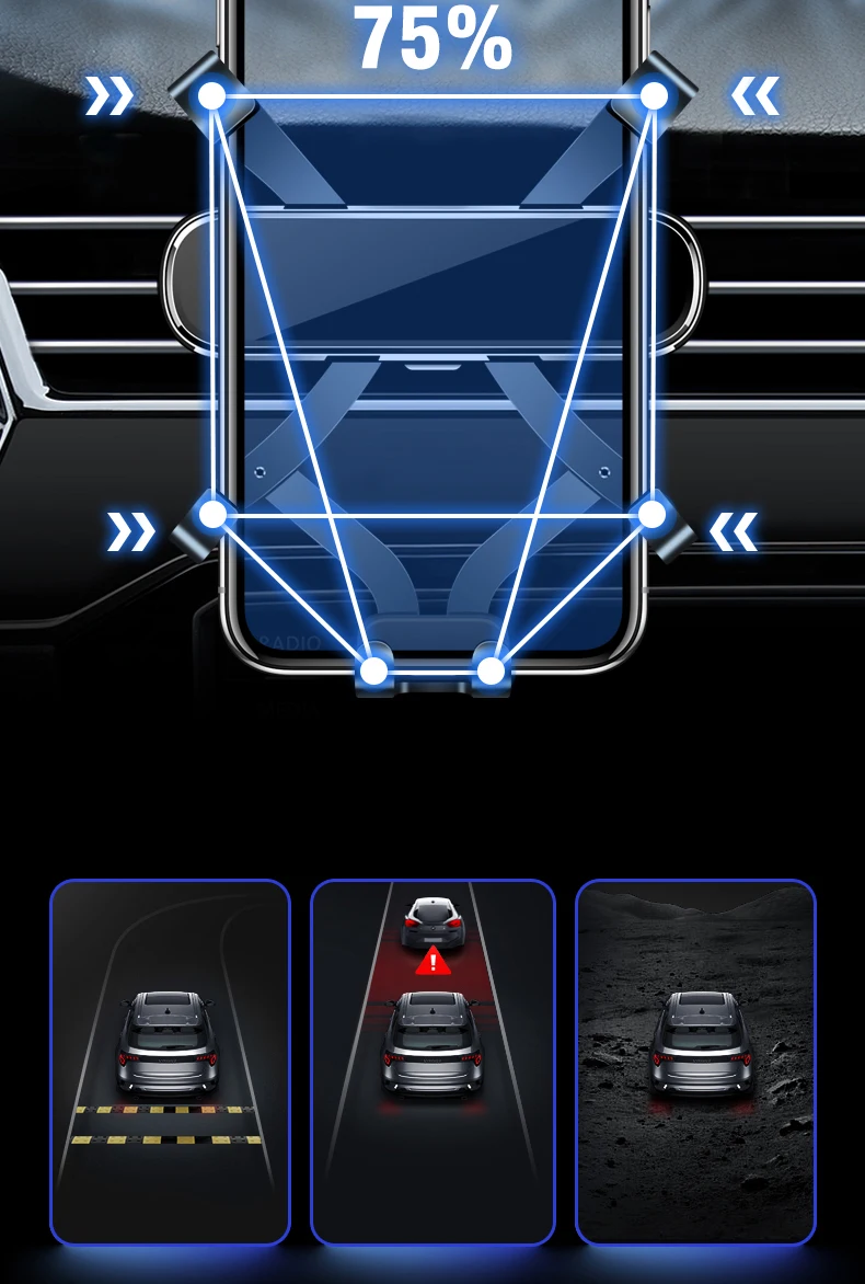 Fixation: High power collet chuck, the holder could be fixed steady at the air outlet fan, with the soft rubber mat, no harm to the car.