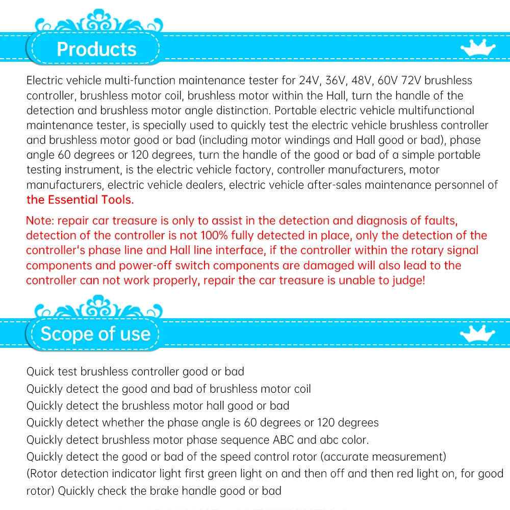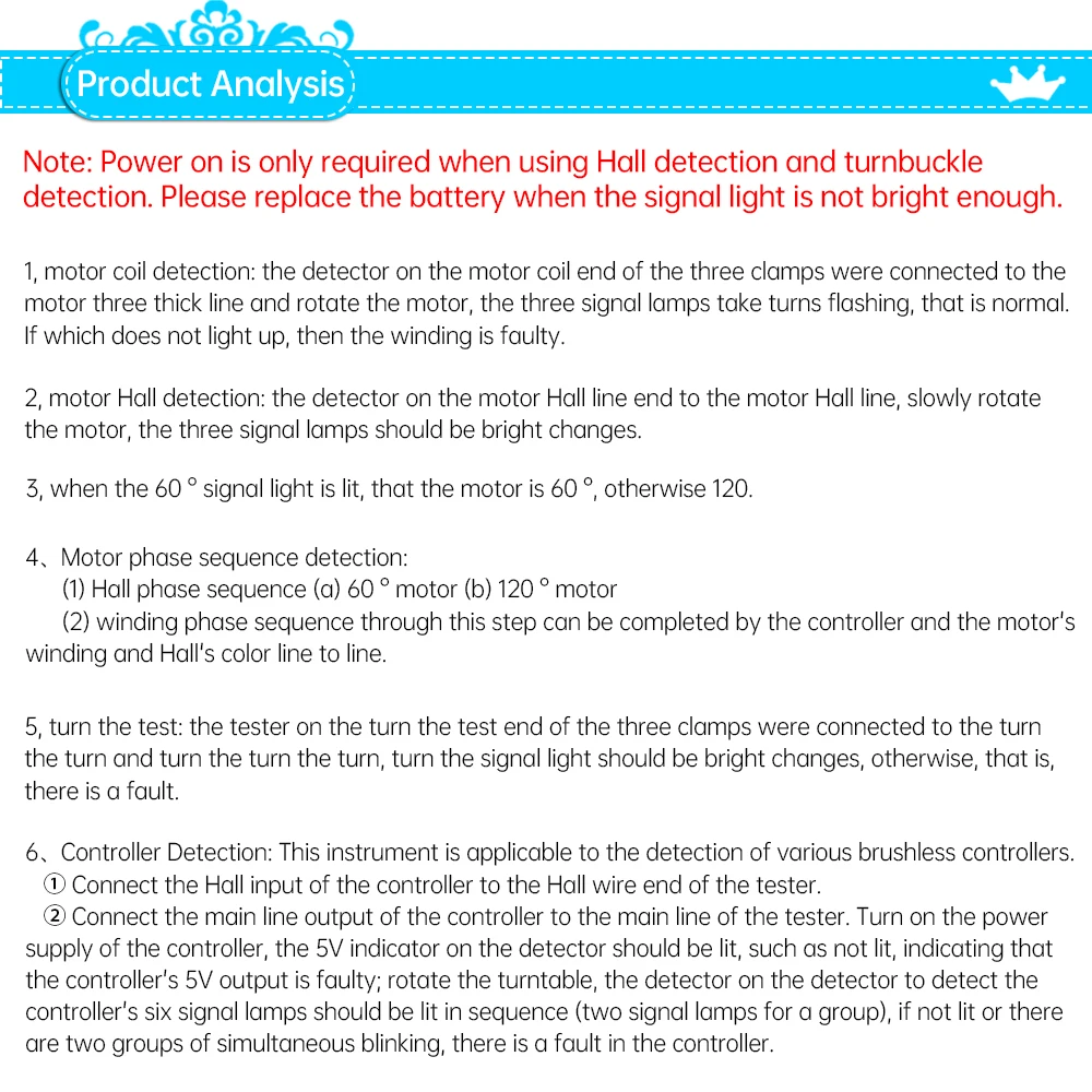 6. Controller detection: This instrument is suitable for the detection of various brushless controllers:
