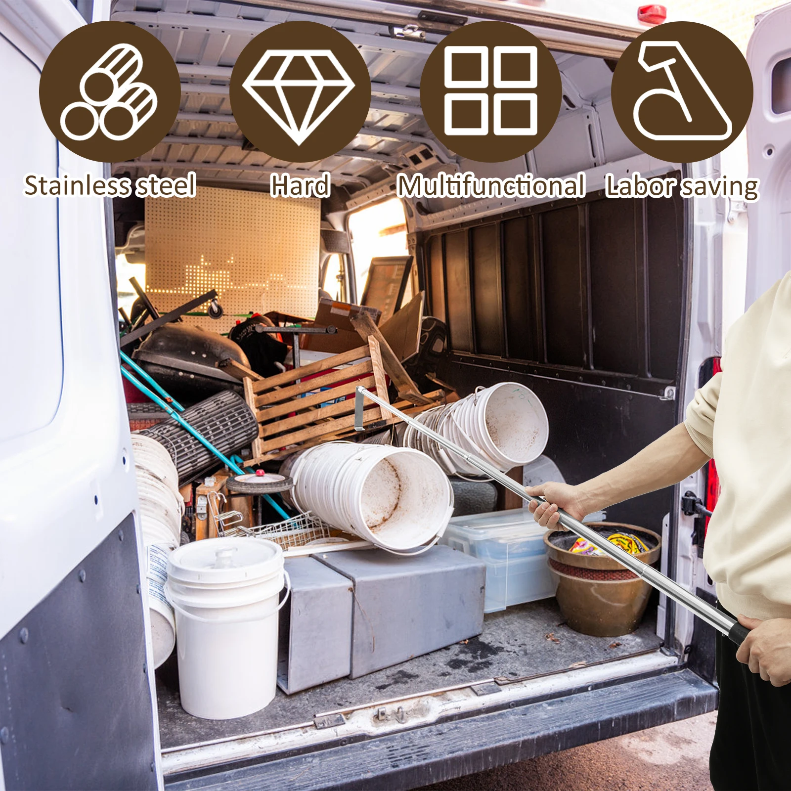 Product Material: Made from stainless steel, this grabber tool is sturdy, rust resistant, and lightweight, making it ideal for daily use in trucks, garages, or RVs without adding extra weight
