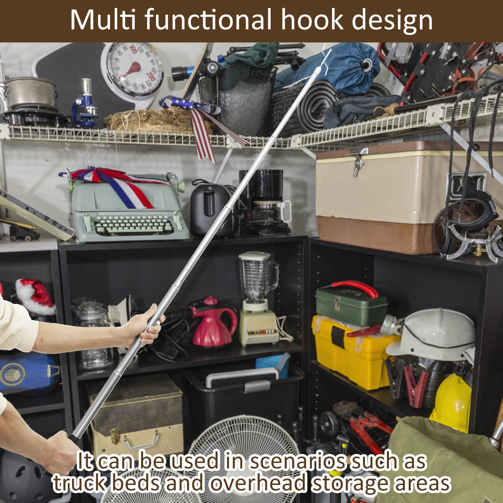 Versatile Use: Designed with two different hooks, this truck cargo grabber is great for reaching truck beds, overhead storage, or any hard to reach areas, and its extendable design saves space when not in use