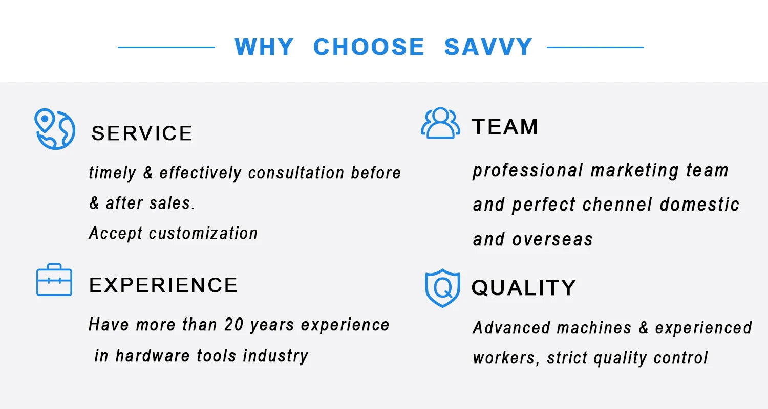 SAVVY is devoting to be one of the major experts of hand tools in 10 years by developing long-term cooperative business relations and multiple benefits with all clients and partners worldwide.