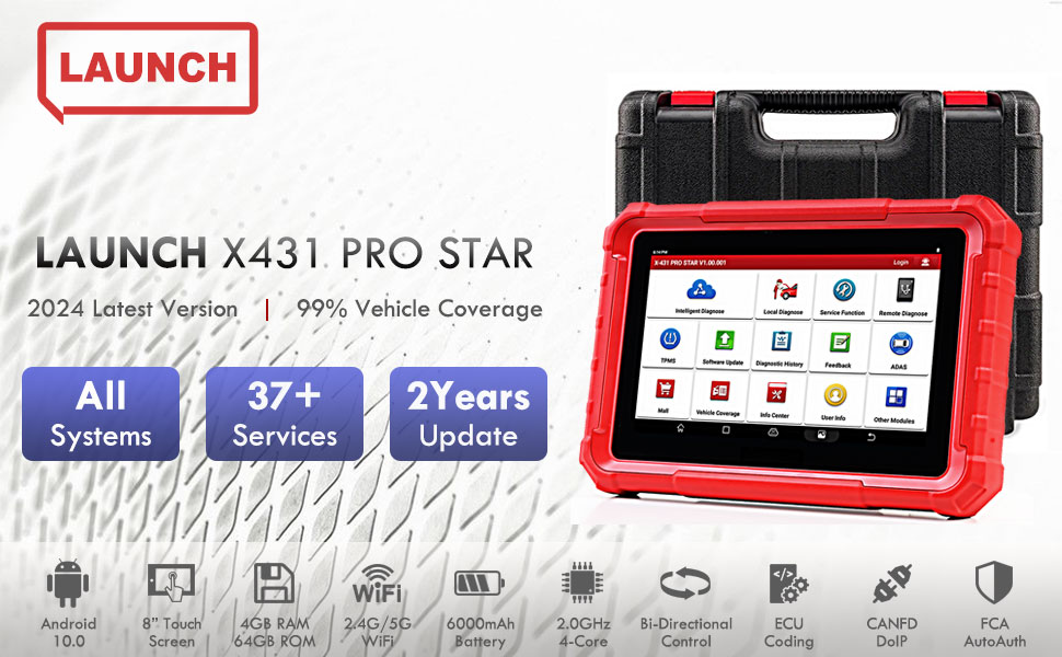 LAUNCH X431 PRO Star Bi-Directional Diagnostic Scanner, , ECU Coding, Full System OBD2 Scan Tool with CANFD, DoIP, FCA AutoAuth