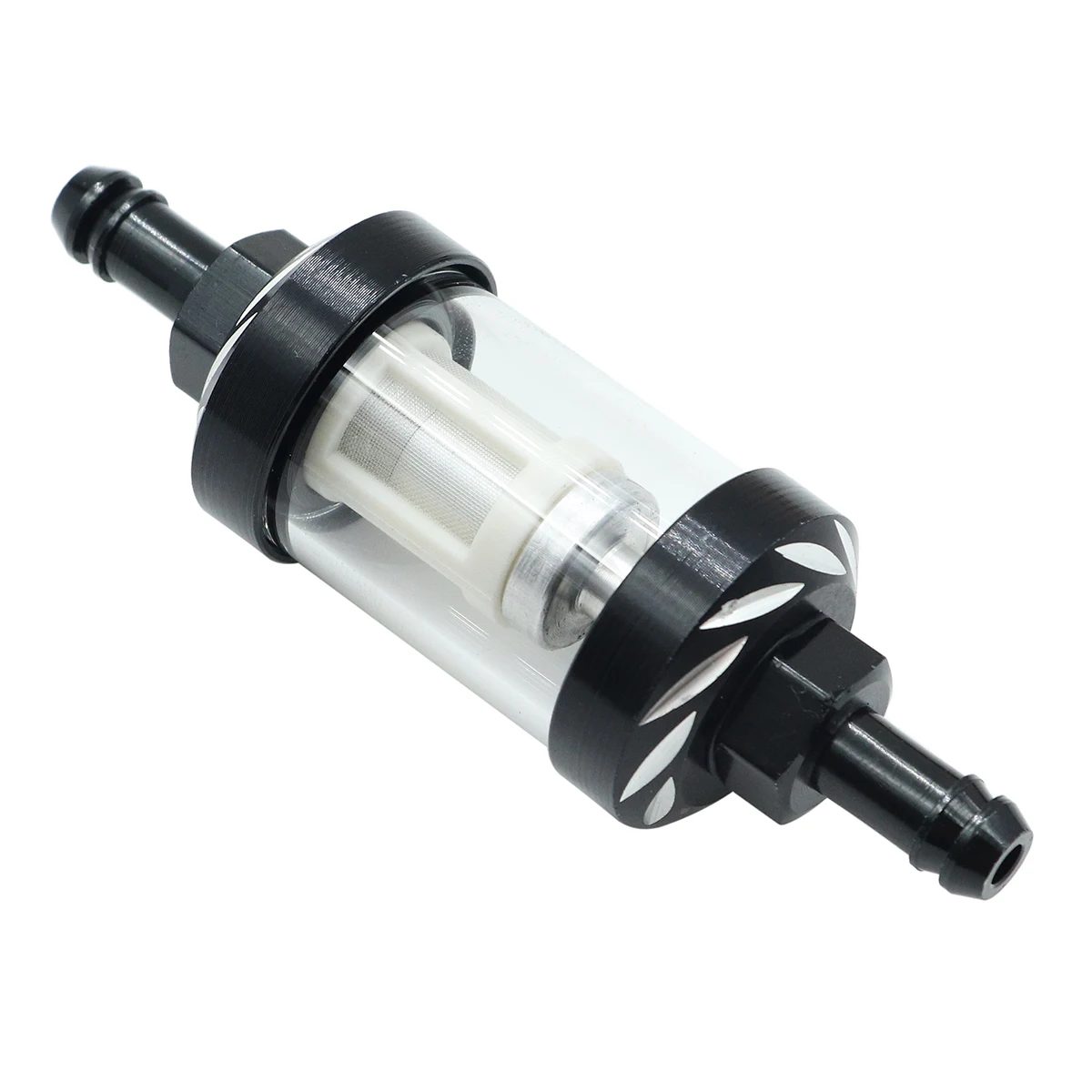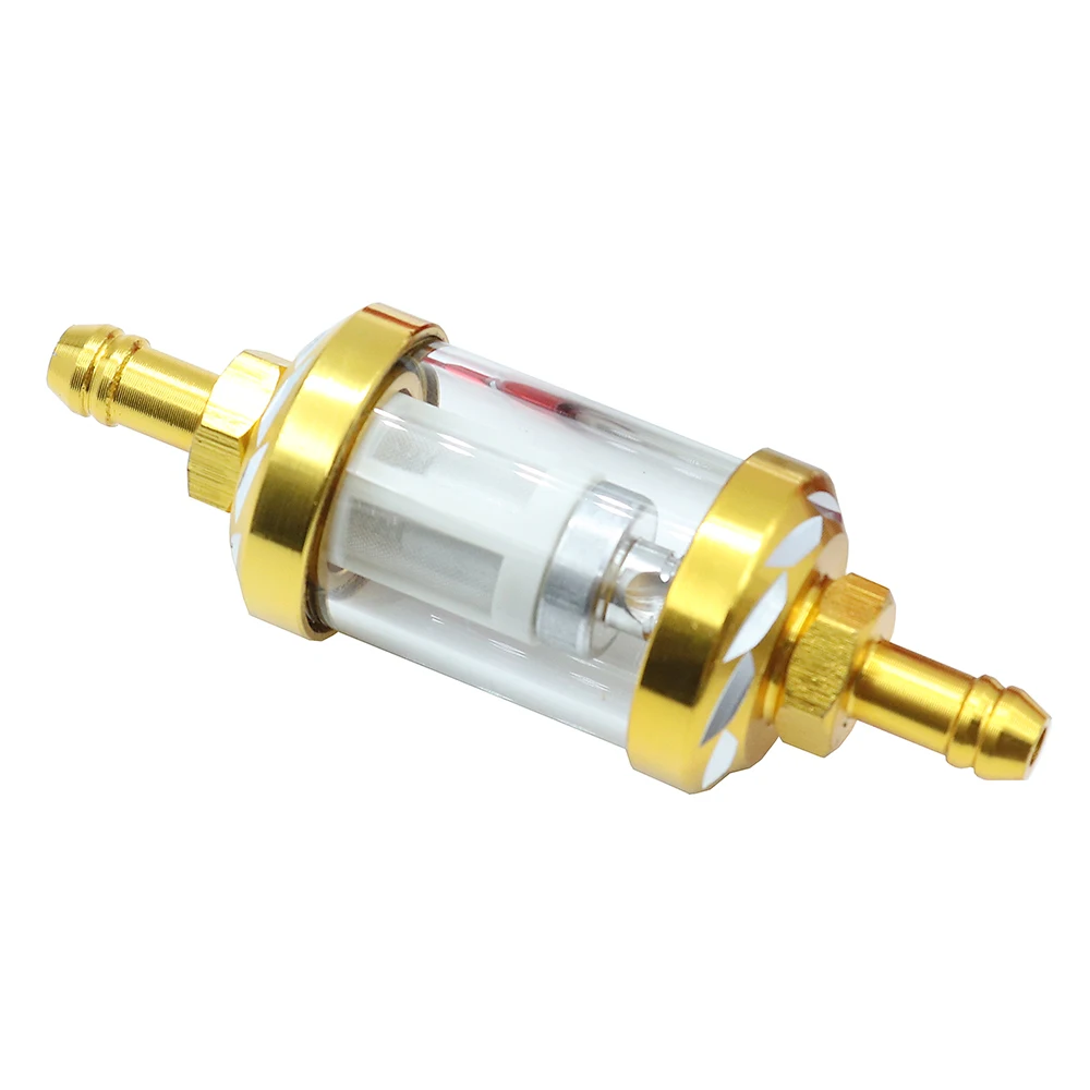 Made of aluminum alloy joint and glass shell, you can clearly see the cleanliness of the gasoline inside the filter.