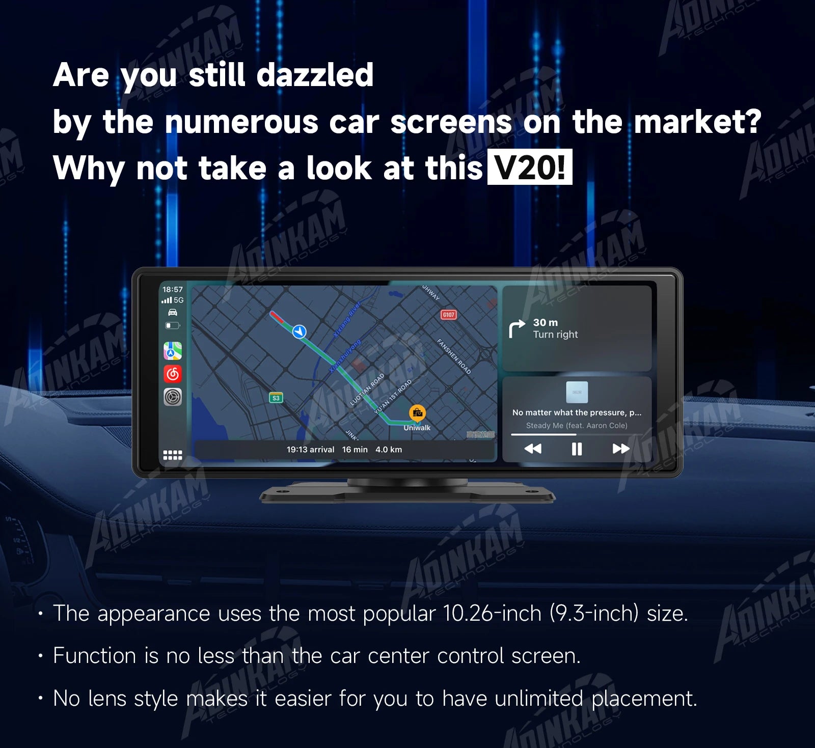 New Trend 10.26 Inch Carplay Android Auto Smart Screen Built In 5G Hz WiFi BT Support BT Audio Airplay Miracast Car Dashboard