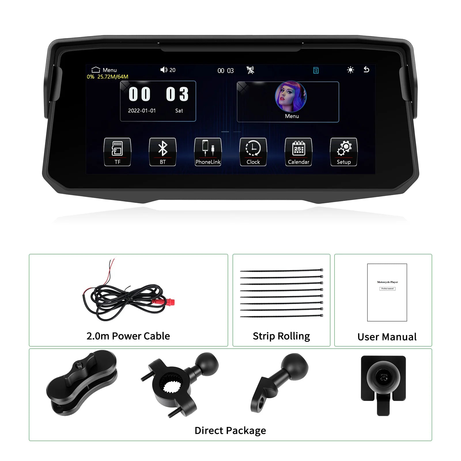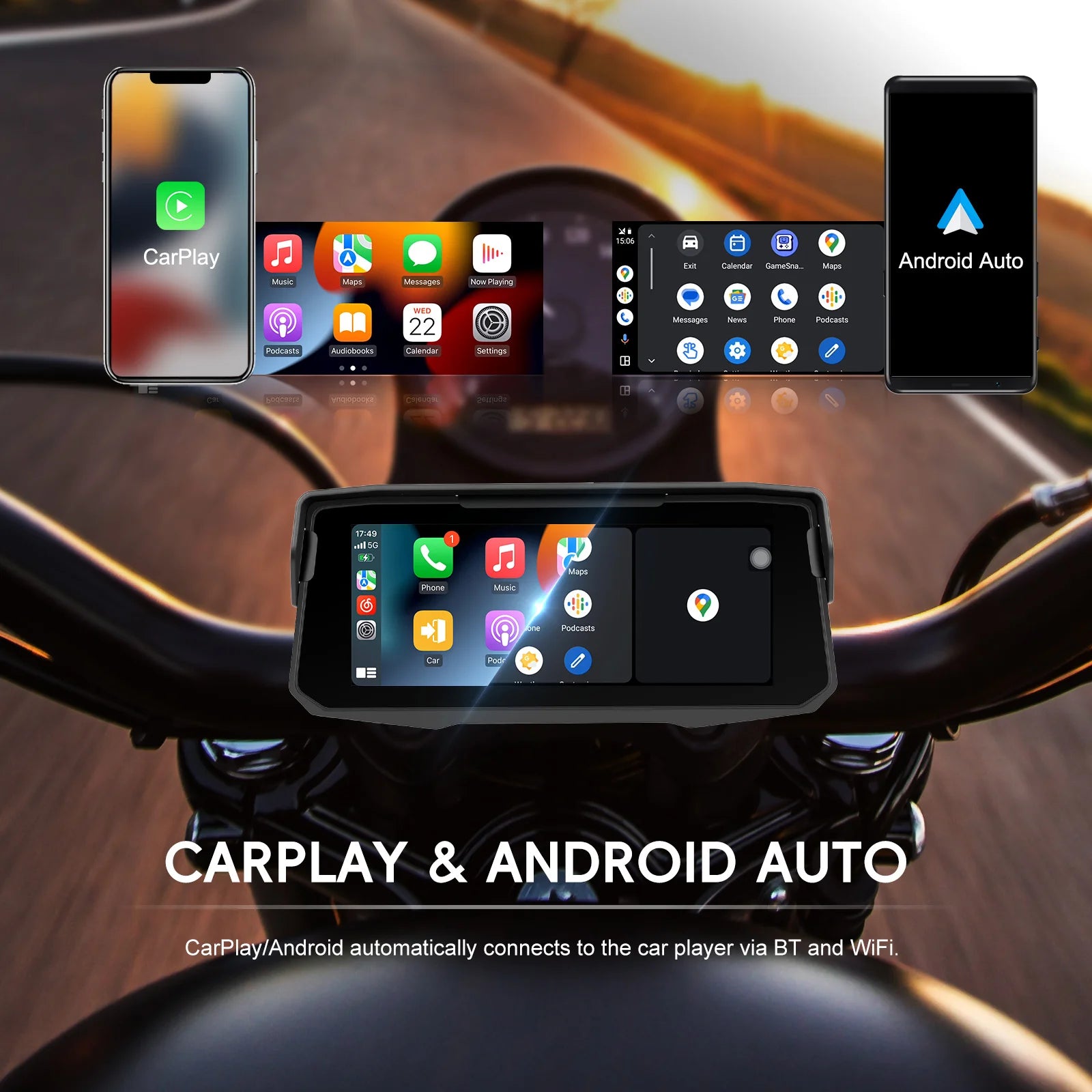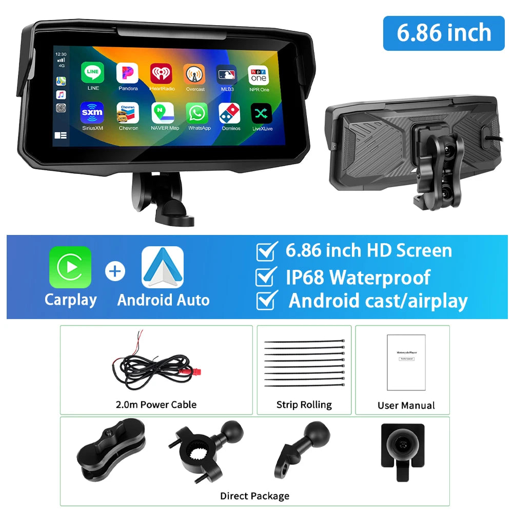 Podofo 6.86'' Smart Screen Player Motorcycle Carplay Android Auto IP68 Waterproof Bluetooth Tire Pressure Airplay Android Cast