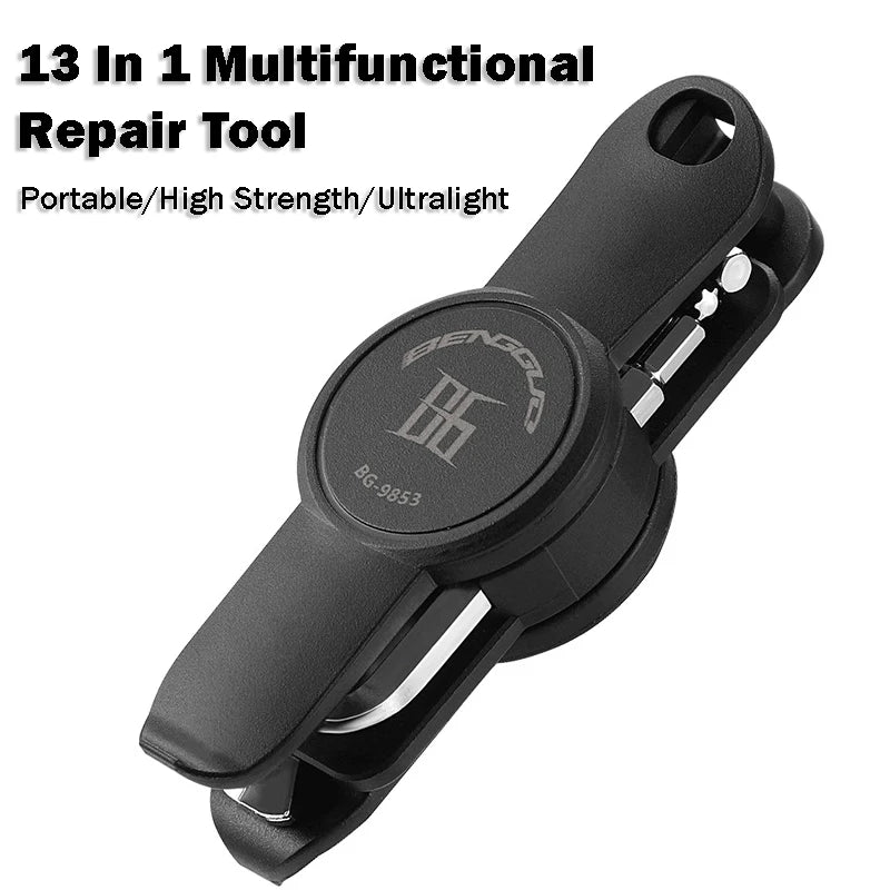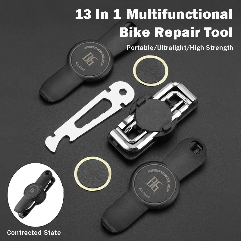 This 13-in-1 bicycle repair tool combines various functions, making it a versatile accessory for any cyclist.