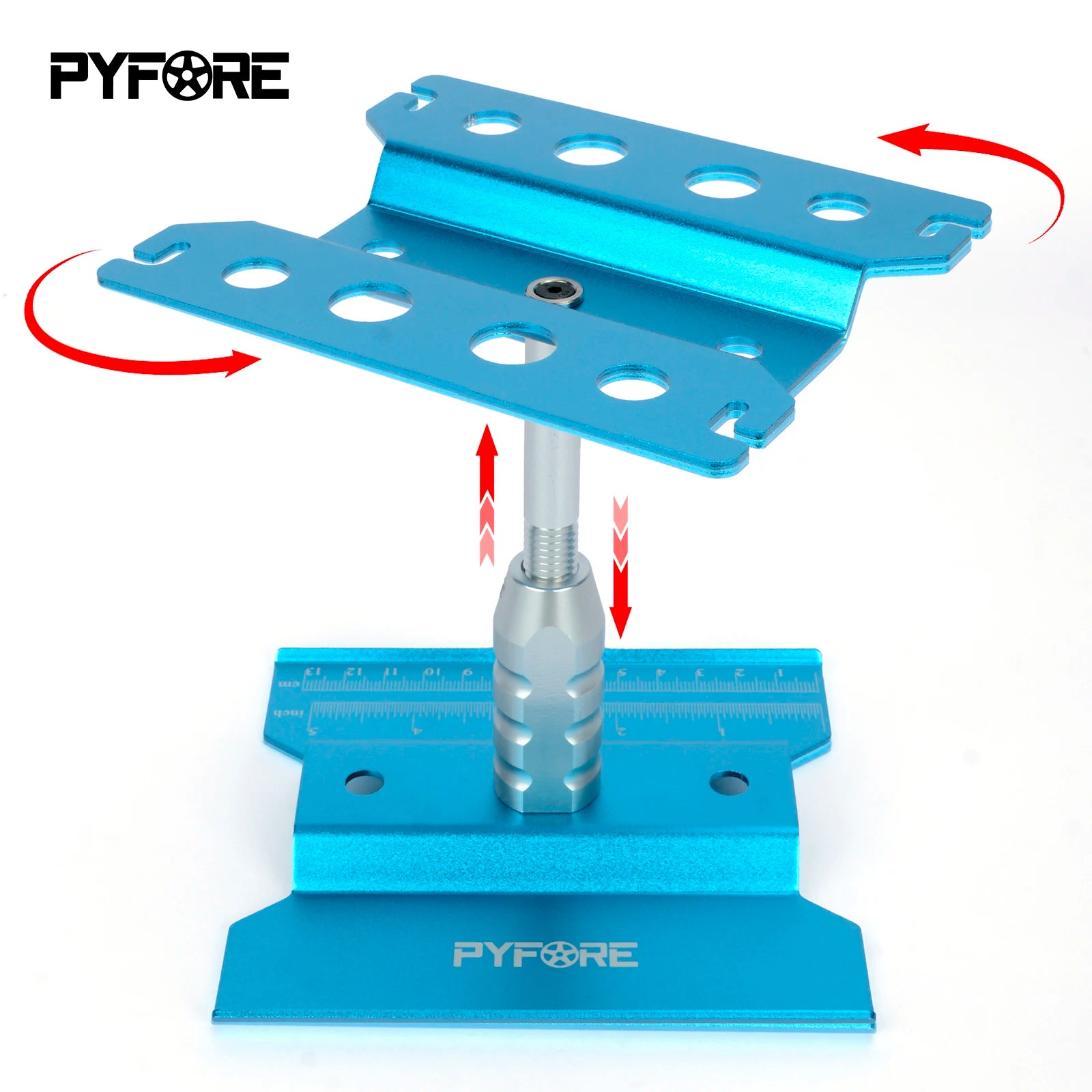 RC multi-purpose repair station: Length * width * height:140*120*145-170mm (Height adjustable) Material:Aluminum alloy Colour:Red/Blue/Gray/Black Applicable models: 1/16,1/10/1/8 Crawler, Buggy, Short truck, Flat running Drift car Repair Station Features: 1.With meters and feet 2.Adjustable height 3.Free to spin or lock 4.Accommodate a variety of shock absorbers 5.Easy disassembly, small size and easy to carry