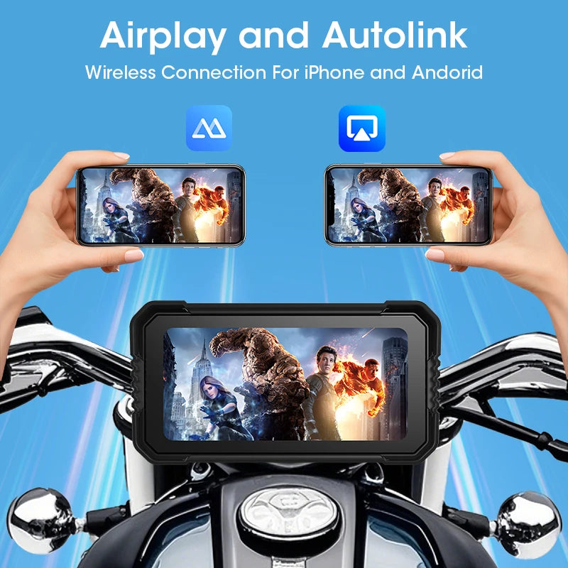 Srnubi 6.25'' Portable Digital Motorcycle Dashboard CarPlay Android Auto GPS for Moto Navigation Display Screen IPX7 Waterproof