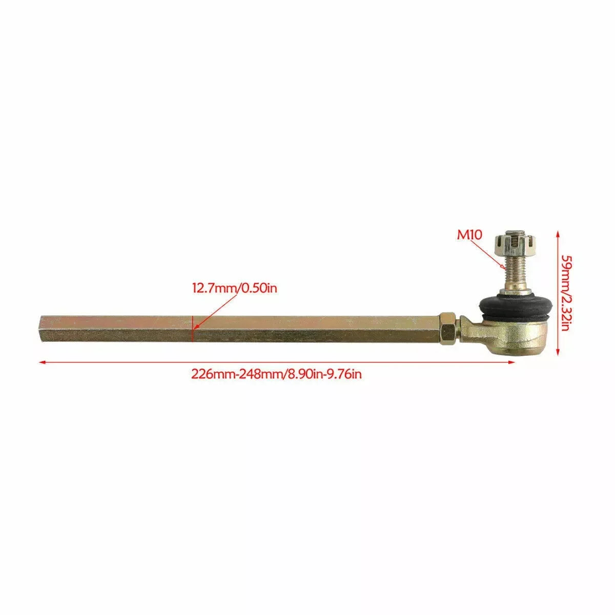 The end to end length range after the tie rod connected with the steering rack is from 19"-23" / 480mm-580mm