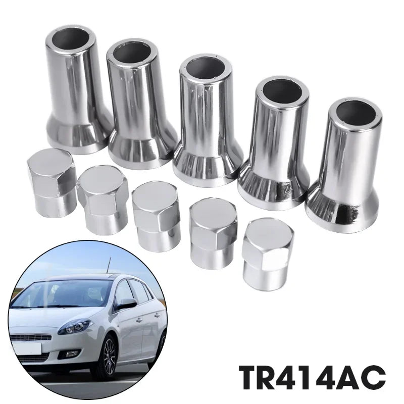 TR414AC Chrome Car Truck Tire Wheel Tyre Valve Stem Hex Caps with Sleeve Covers Left Right Front Rear Autos Accesorios