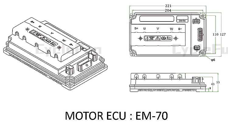 VOTOL EM70 Controller 70A/230A 1KW-2KW For In-Wheel Hub And Mid-Drive Motor Electric Motorcycles Scooter