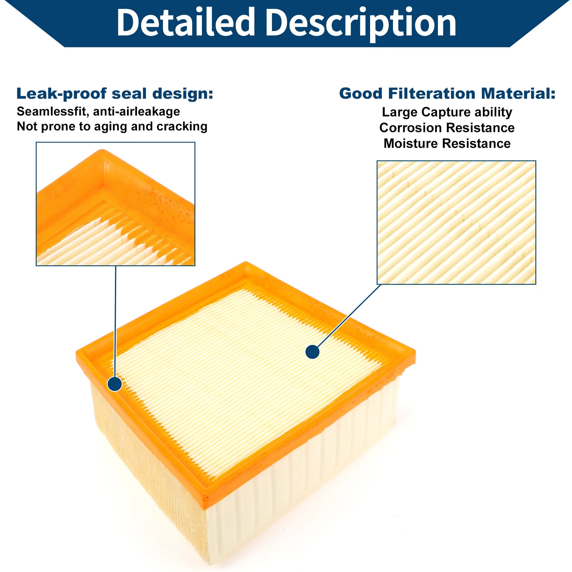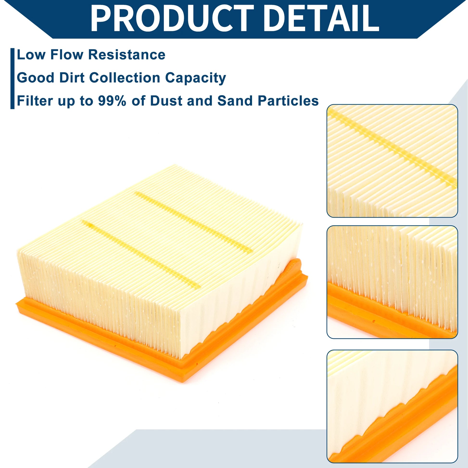 Using good performance filter media to captures various debris. The air entering the engine cylinder is finely filtered to prevent dust and debris, ensuring a sufficient amount of clean air.